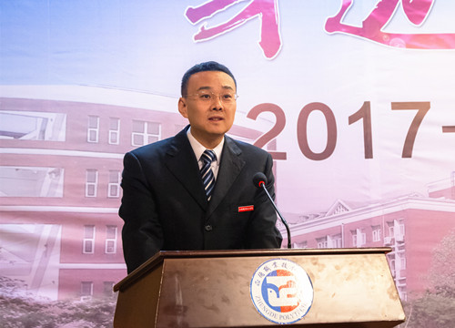 院长庄群华在会上作了《牢记使命 奋斗前行》的讲话,他代表学院向获得表彰的集体和个人表示祝贺,向辛勤付出的师生员工致以敬意。同时对同学们提出殷切期望:第一,希望同学们坚持梦想,立志发奋成才。“坚持梦想并为之不懈奋斗,人生才更有意义”。希望同学们能坚定这个信念,把对远大理想的向往与追求转化为实实在在的行动,既志存高远,又脚踏实地。以坚韧不拔的品格,负重自强,在不懈努力中施展自己的抱负,实现人生的价值。第二,希望同学们勤奋好学,练就扎实本领。要以“工匠精神”为引领,练就扎实精湛的专业本领,养成“执着专注、精益求精、追求完美”的职业品质,在学习和实践中,促进职业素养与专业技能的同步提升,努力做到学有所成,真正成为现代化建设所需要的高素质技能型人才。第三,希望同学们挑战自我,培养创新精神。作为国家未来的建设者,希望同学们能向优秀的师生学习,在未来的发展中秉持创新的精神,探寻创新的方法,鼓起创新的勇气,在创新创业道路上大胆实践,增长才干,提升能力,不断迈出新的步伐。