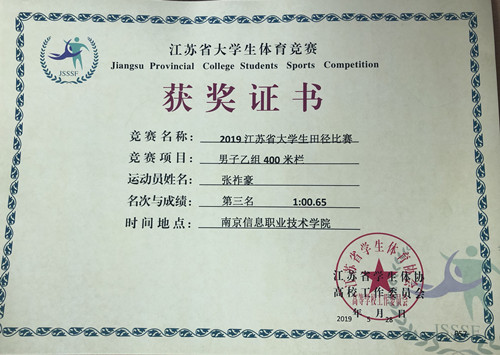 5月27日至28日,2019年南京市高校运动会及江苏省大学生田径冠军赛在南京信息职业技术学院举行。91自拍 田径健儿在教练员杨俊娃老师的带领下,克服各种困难,奋力拼搏,发挥了最佳竞技状态。经过两天紧张激烈的角逐,荣获第一名三项,第二名、第三名各一项,第四名、第七名各两项,第五名、第六名和第八名各一项,打破两项院田径运动会纪录,取得了骄人的成绩,为20周年校庆献上了一份厚礼。