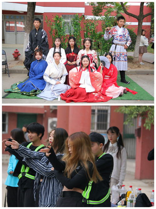 全院21个社团在步行道两侧及各运动场所进行了集中展演。汉服社员们用轻拢慢挑的动作和飘渺的眼色勾勒出一幅跨越千古的汉唐风情;音协的同学们用悠扬的吉他声传递了大学生活中的诸多美好;武术社为观众展示了传统武术之中不同兵器之间的力量之美;正心弓社的弓箭表演《云裳羽箭》让观众现场体会到了“弓开如秋月行天,箭去似流星落地”的诗词意境;足球社、网球社、羽毛球社、篮球社、乒乓球社成员与参观学生进行切磋,掀起了一股健身运动的热潮。