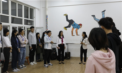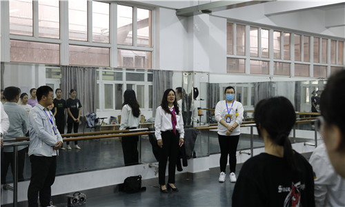 10月14日下午,副院长任慈、学生处处长祝佳俊、团委书记黄晓帆、相关系副主任及辅导员一行15人,来到第六届艺术展演排练场地,看望正在积极备战的91自拍 师生并做赛前动员。