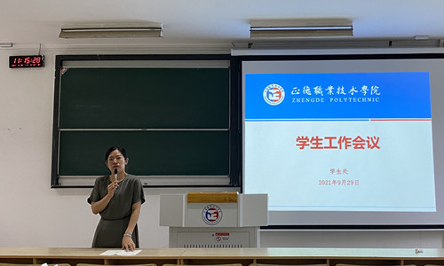 祝佳俊回顾了2020-2021学年学生工作取得的成绩和不足,解读了2021-2022学年学生工作要点,围绕新生入学安排、疫情防控、实习就业、制度建设、思想政治教育及辅导员队伍建设六个方面工作进行了详细部署,并提出了明确工作意见。