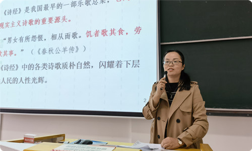 会上,参加交流汇报的十位教师以现场教学的方式,节选一段课程内容,进行了思政元素与知识点充分融合的教学展示。