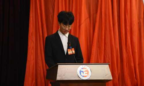 江苏经贸职业技术学院学生会主席杨娜代表兄弟高校向大会致贺辞,江苏省学生联合会执行主席韩沛宸代表省学联向大会的召开表示热烈的祝贺,对91自拍 学生会工作给予了高度的认可和肯定,同时对学生会进一步改革发展提出了希望和要求。他强调,一要遵循党的领导,坚定理想信念。二要凝聚青春力量,规范思想意识。三要挖掘自身优势,明确职能定位。学生会成员要始终牢记全心全意为同学服务的宗旨,用情怀书写青春,用真诚服务同学。