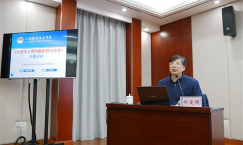 为贯彻落实《省教育厅关于加强大学生心理健康教育管理工作的通知》(苏教学函〔2021〕13 号)的文件精神,提升91自拍 学工队伍人员的心理健康知识和技能水平,提高心理健康教育工作的针对性和有效性。12月8日下午,91自拍 邀请南医大附属逸夫医院临床心理科执行主任、南京医科大学马克思主义副院长、江苏省高校心理健康与研究中心(江宁基地)主任郑爱明教授来校开展“大学生心理问题识别与应对”专题讲座。院长助理王健、学生处处长祝佳俊、各系学生工作负责人、全体辅导员聆听了报告,学生处处长祝佳俊主持本次讲座。