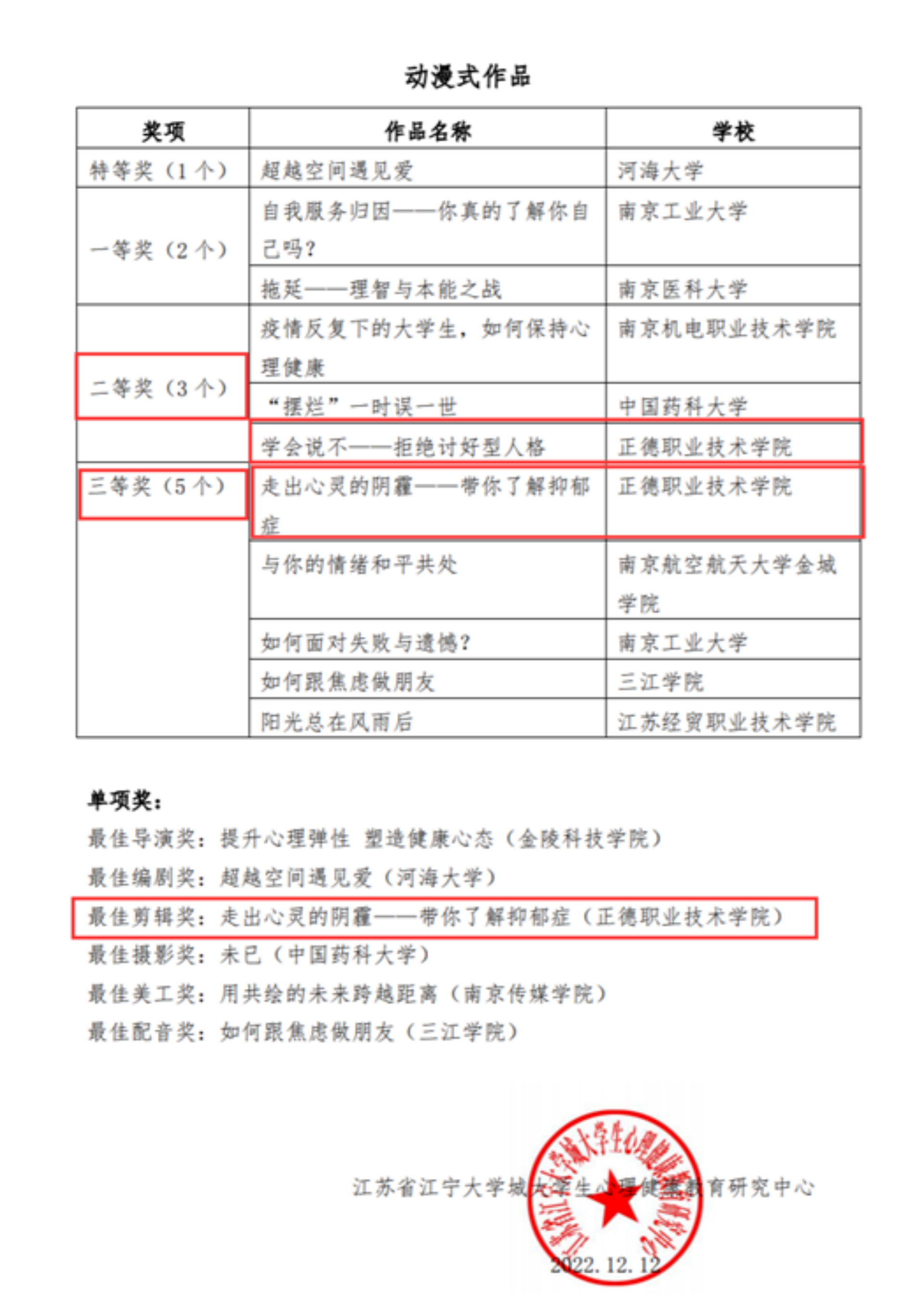 江宁大学城心理健康移动微课程比赛已连续开展六年,吸引了广大师生积极参加,在各高校友好交流的同时,创作产生了一系列生动趣致、寓教于乐、富有时代和青春气息的心理健康科普类短视频作品,应用于学校的心理健康宣传教育,促进了同学们对心理健康的关注和思考。91自拍 自江宁大学城举办微课大赛以来,共获一等奖2项、二等奖1项、三等奖1项。今后,91自拍 也将一如既往加强大学生心理健康教育建设,坚持“育人” “育心”相统一,激励同学们不断向阳携行,共创未来。