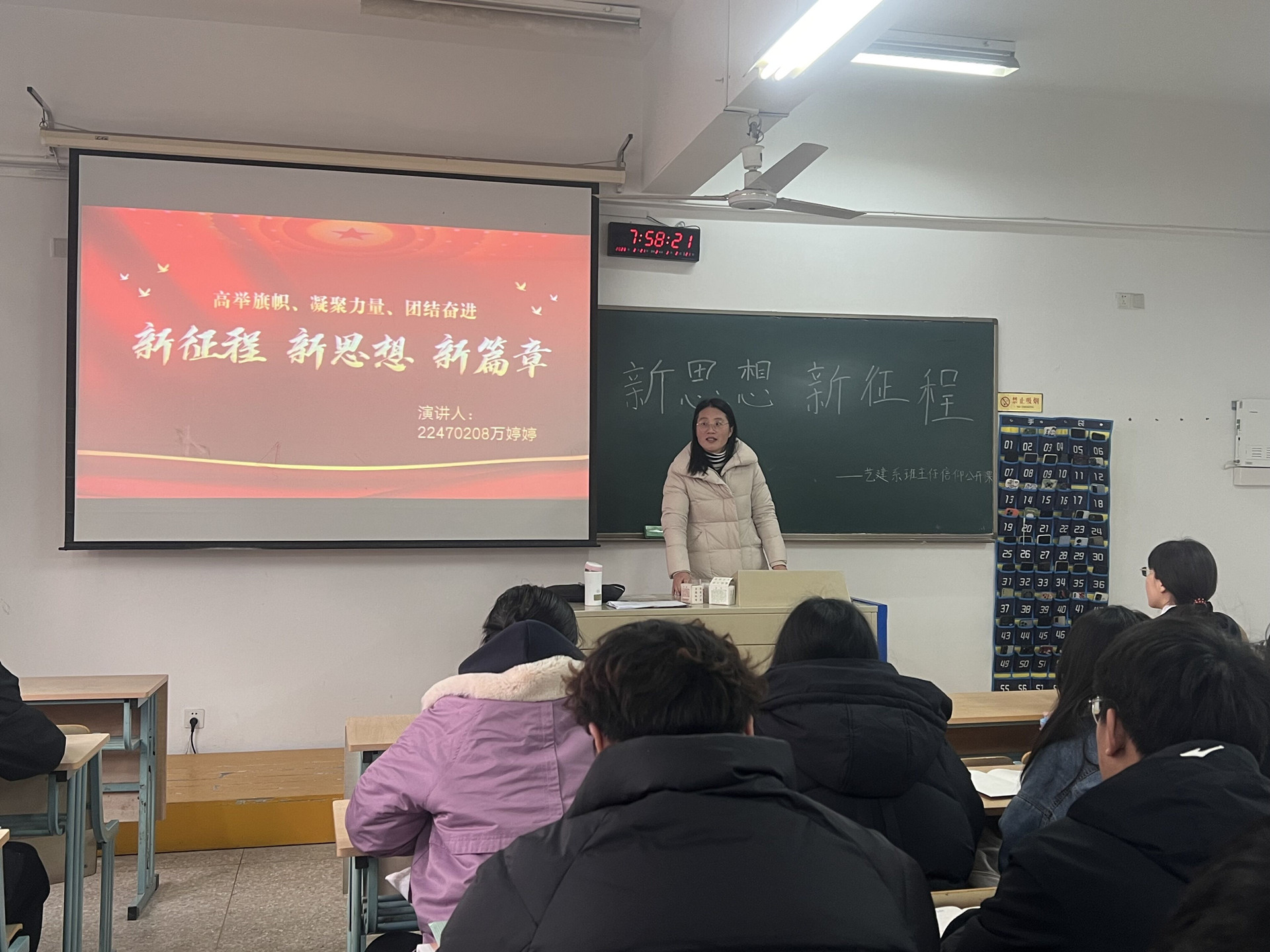 为学习宣传党的理论知识,认真学习与发扬二十大思想,努力践行班主任制度。艺术设计与建筑工程系工程造价全体团员于2月20日上午8点在9105教室开展了“新征程、新思想、新篇章”信仰公开课活动。参加本次活动的有辅导员王家甲、班主任徐冬梅。