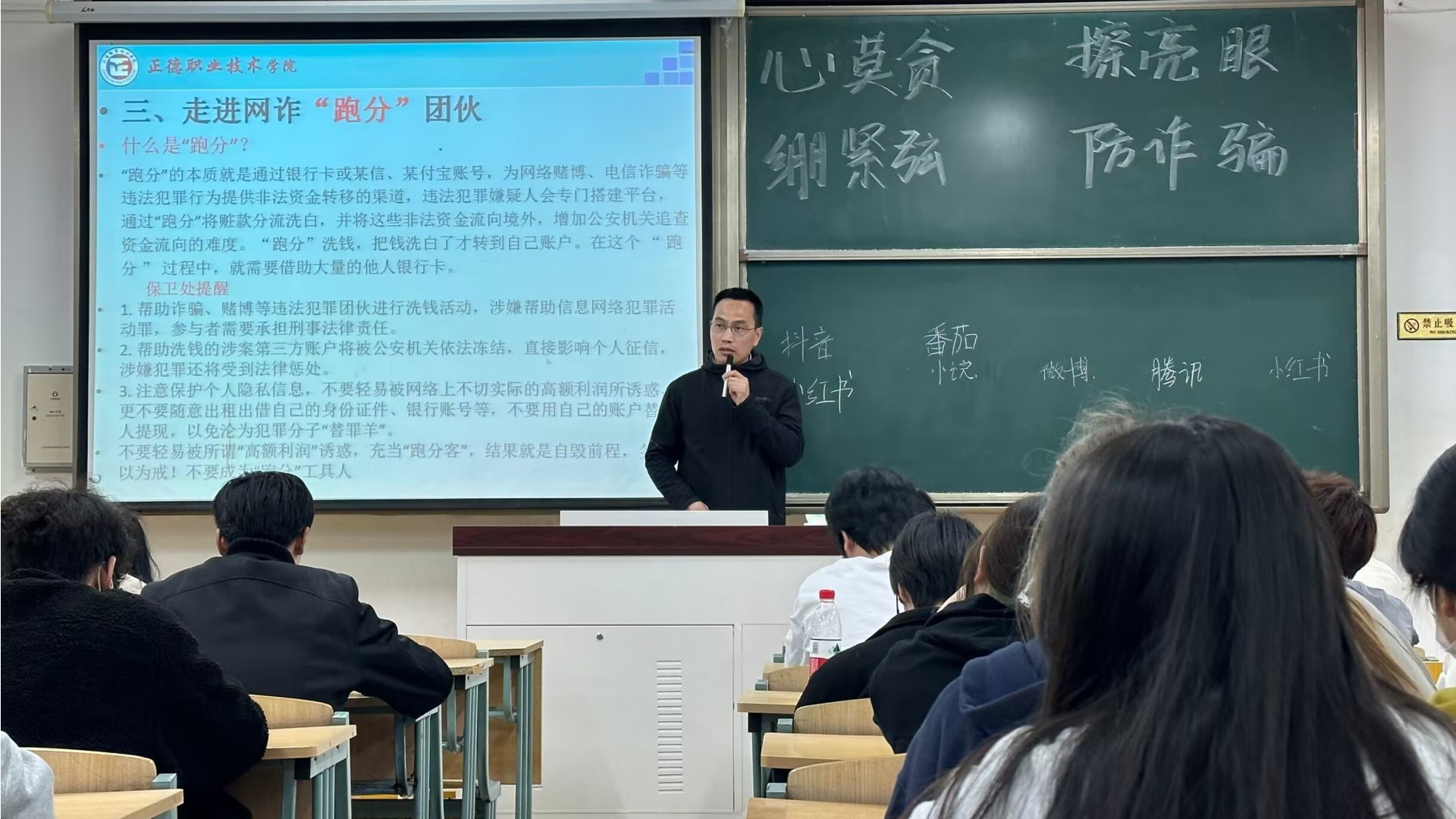 为进一步提升91自拍 学生防范电信诈骗违法犯罪意识,有效遏制电信诈骗高发事态,切实保障广大学生群体的财产安全,加强学生管理,在校园贷、网络方面进行引导。环艺、数媒专业22级学生3月6日下午在9308教室,召开了关于防电信诈骗的主题班会。辅导员廖晶晶、党支部书记陈宏波参会,特别邀请了保卫处副处长丁胜做主要宣讲。