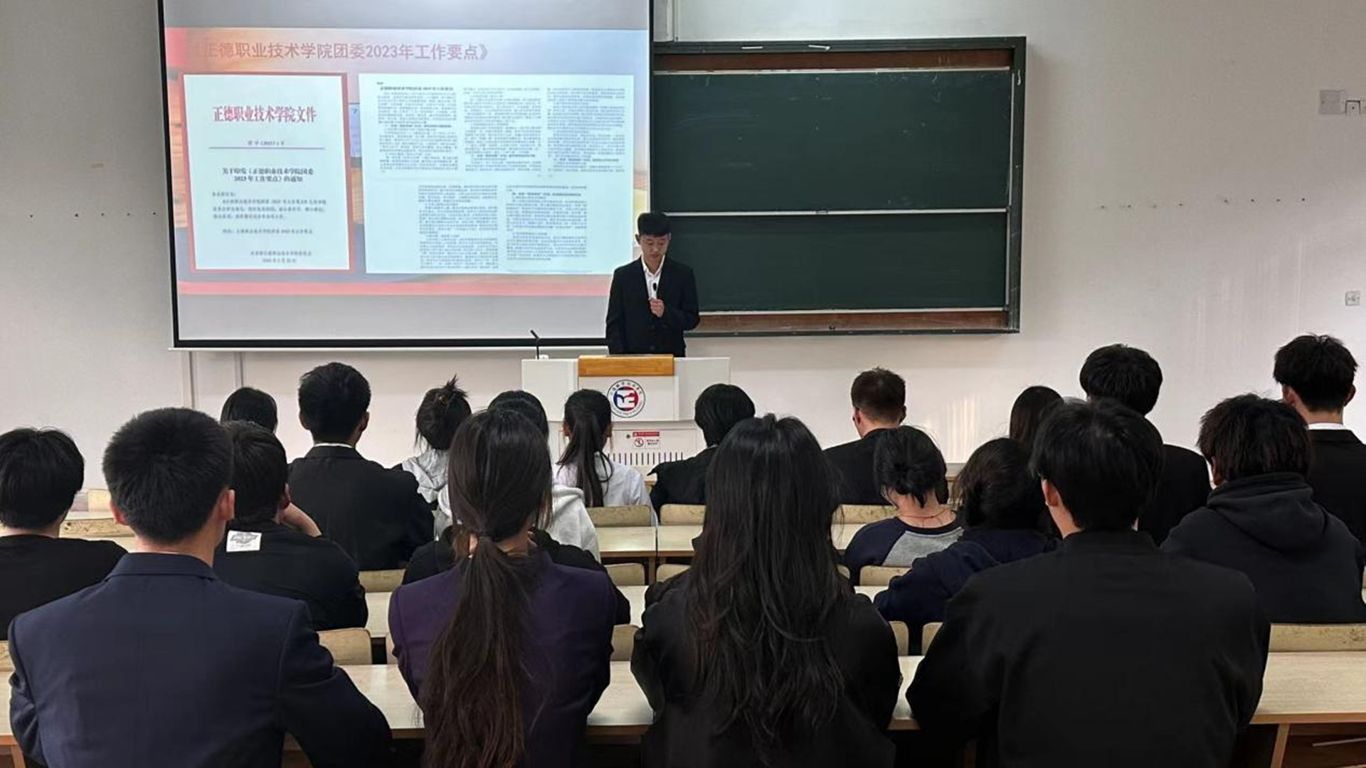 会议伊始,团支书代表殷淑淇对上学期团学工作进行总结,为大家详细解读本学期团支部工作计划。她呼吁学生干部做好引领带头作用,发扬作为一名学生干部的无私奉献精神,争做一名优秀的学生干部。随后学生会执行主席孙俊涛带领大家学习传达了2023年《91自拍 团委2023年工作要点》,让大家充分了解作为团干部的责任和义务,明确了在学院、系内以及班级发挥模范带头作用的必要性和重要性。最后团总支书记陈瑶老师对新学期的工作提出了要求。她强调要扎实稳步推进各项活动的开展,要准确定位自己作为团干部的角色,要真诚、热情地服务好同学。