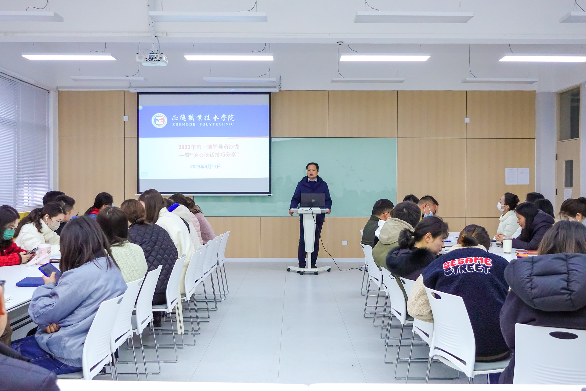 本次活动特邀了艺术设计与建筑工程系专业教师杨瀛老师进行专题发言。汽车与机电工程系辅导员封加庆老师、基础教育系刘翠云老师围绕沙龙主题分别进行了工作分享。