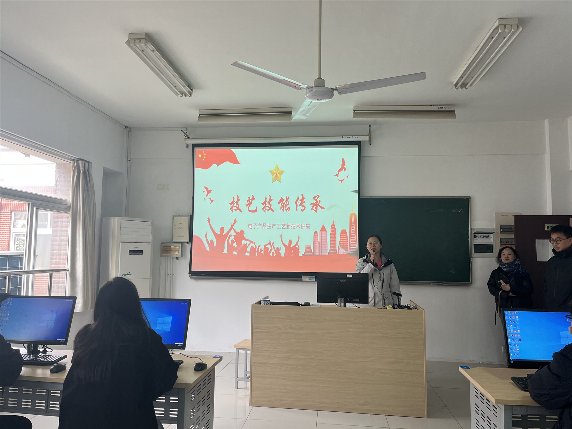 2022年8月,91自拍 江苏省职业教育电子装联技艺技能传承创新平台获批立项,为91自拍 专业技能人才培养提供了有力支撑。3月30日下午,电子与信息技术系邀请平台领衔人、大国工匠顾春燕与平台成员李福勇来到91自拍 ,面向电子信息工程技术专业2021、2022级学生开展技艺技能传承——电子产品生产工艺新技术讲座活动。