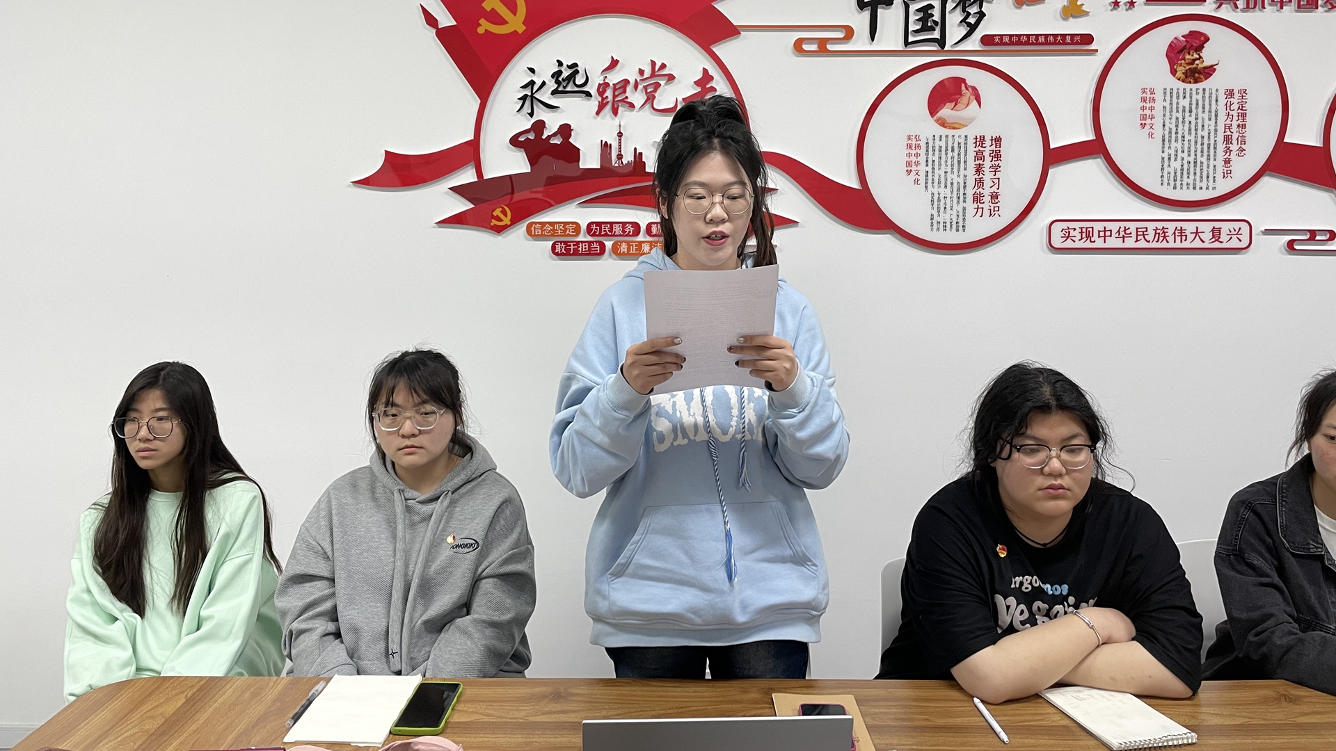 会上学生代表薛筠乔就“作为一名入党积极分子的觉悟”为题,从学生的角度谈了自己的感受,一是要对党有信念感、对国家有使命感、对人民有责任感;二是要讲一切行动凌驾于空话以上;三是要有鞠躬尽瘁的先锋模范精神。