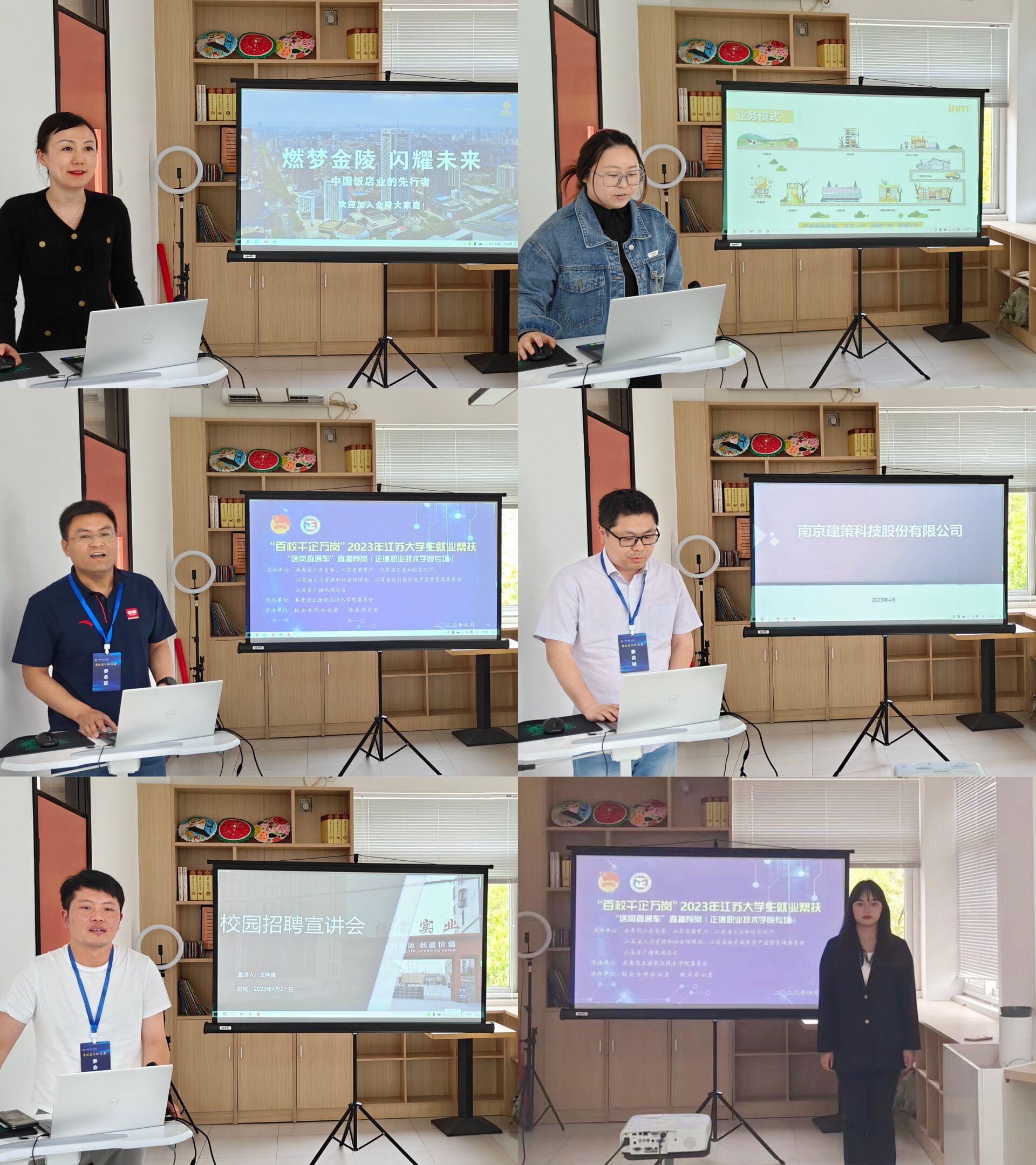 通过前期精心遴选,最终南京建策科技股份有限公司、江苏京启承信息科技有限公司、浙江一鸣食品有限公司、江苏柄堂实业有限公司、金陵饭店股份有限公司等12家优质企业参与现场直播荐岗,发布职位219个,吸引了近七百名学生在线收看。每家企业招聘负责人从企业概况、工作环境、薪酬福利、发展路径、培养体系等多方面进行了直播推介,使求职者全面了解招聘岗位信息和未来职业发展方向。后期,学院还将根据学生和企业需求对接好网络面试工作。