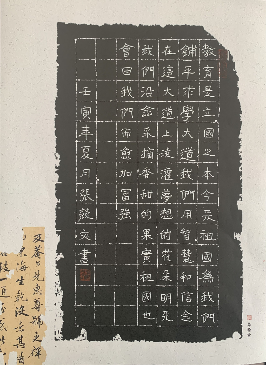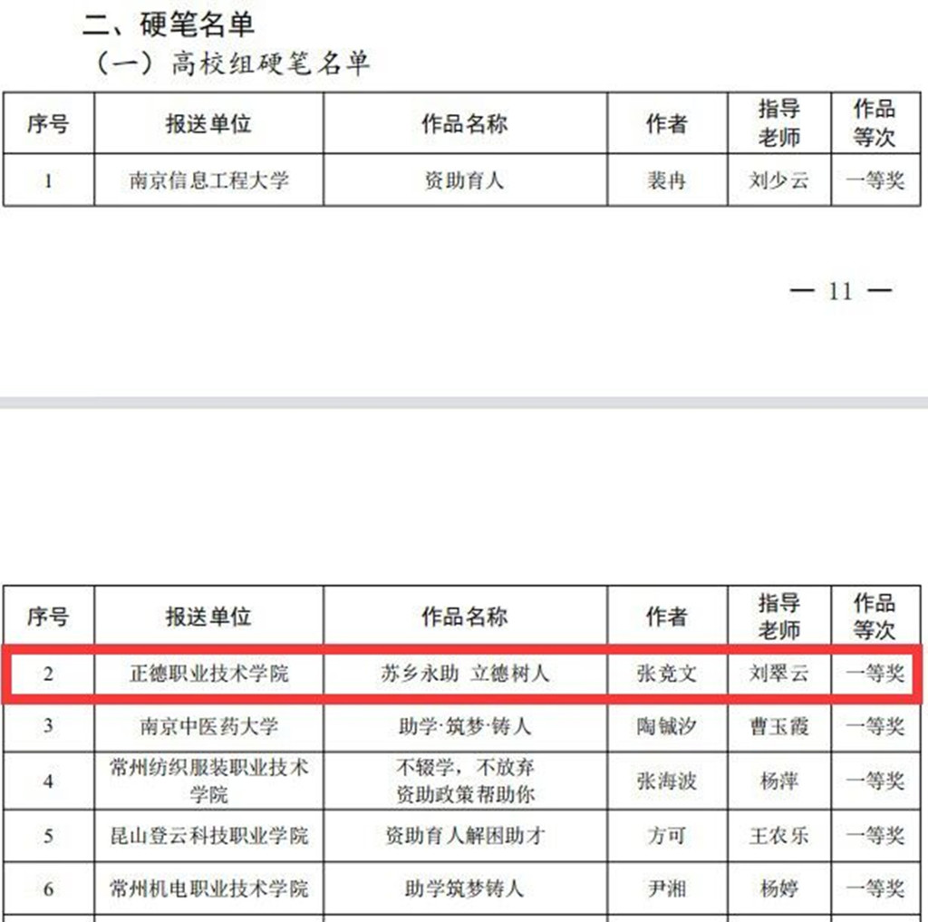 91自拍 基础教育系张竞文同学作品《苏乡永助 立德树人》获得硬笔书法一等奖、杨洁同学作品《强国有我》获得硬笔书法三等奖、裘璧嘉同学作品《苏乡助学诗一首》获得软笔书法三等奖。