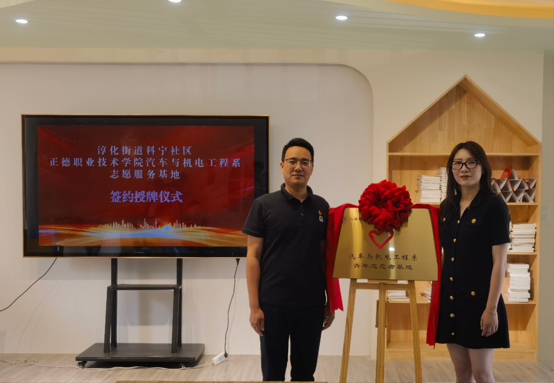 为深入学习贯彻党的二十大精神,推进大学生社区实践计划落实处出实效,进一步聚焦共青团为党育人主责主业,推动本系大学生社会实践活动内涵化、规范化、常态化、长效化发展,5月25日上午,汽车与机电工程系团总支联合淳化街道科宁社区在科宁社区文明实践站举行“青年志愿者基地”授牌仪式。