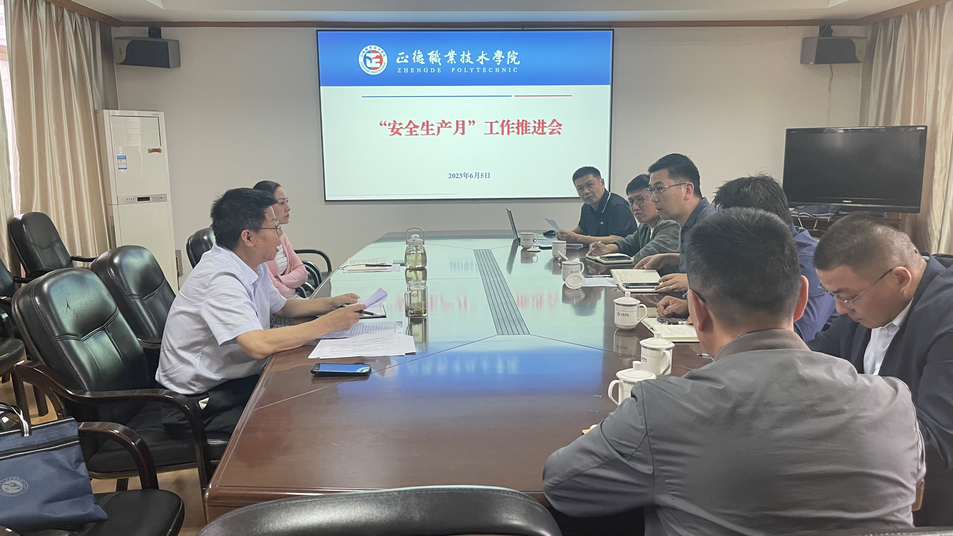 于2023年6月1日党政联席会上专题研究部署“安全生产月”相关工作。2023年6月5日召开“安全生产月”活动推进会,副院长高斌、梁薇,党群工作部、教务处、学生处、后勤处相关负责同志及保卫处全体人员参加会议。