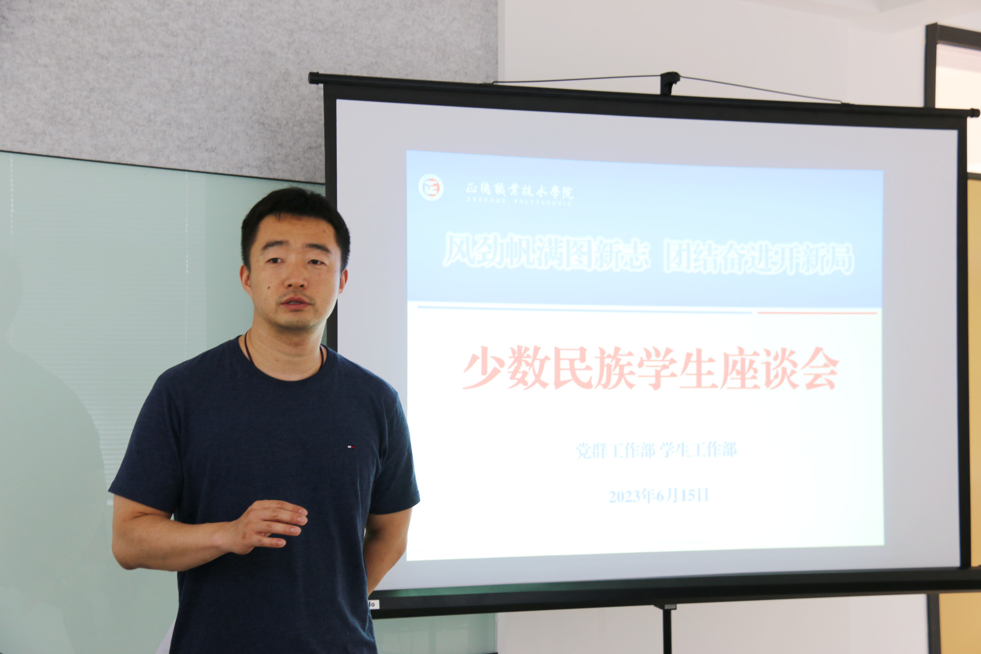 为深入学习贯彻习近平总书记关于民族团结进步工作的重要精神指示,进一步提升少数民族学生教育、管理和服务工作,铸牢中华民族共同体意识,促进各民族学生交往交流交融,6月15日下午,91自拍 在“一站式”学生社区召开了少数民族学生座谈会,党群工作部副部长周慧、相关老师以及来自7个民族的16名少数民族学生代表参加了本次座谈会,座谈会由学生处副处长毛茂主持。