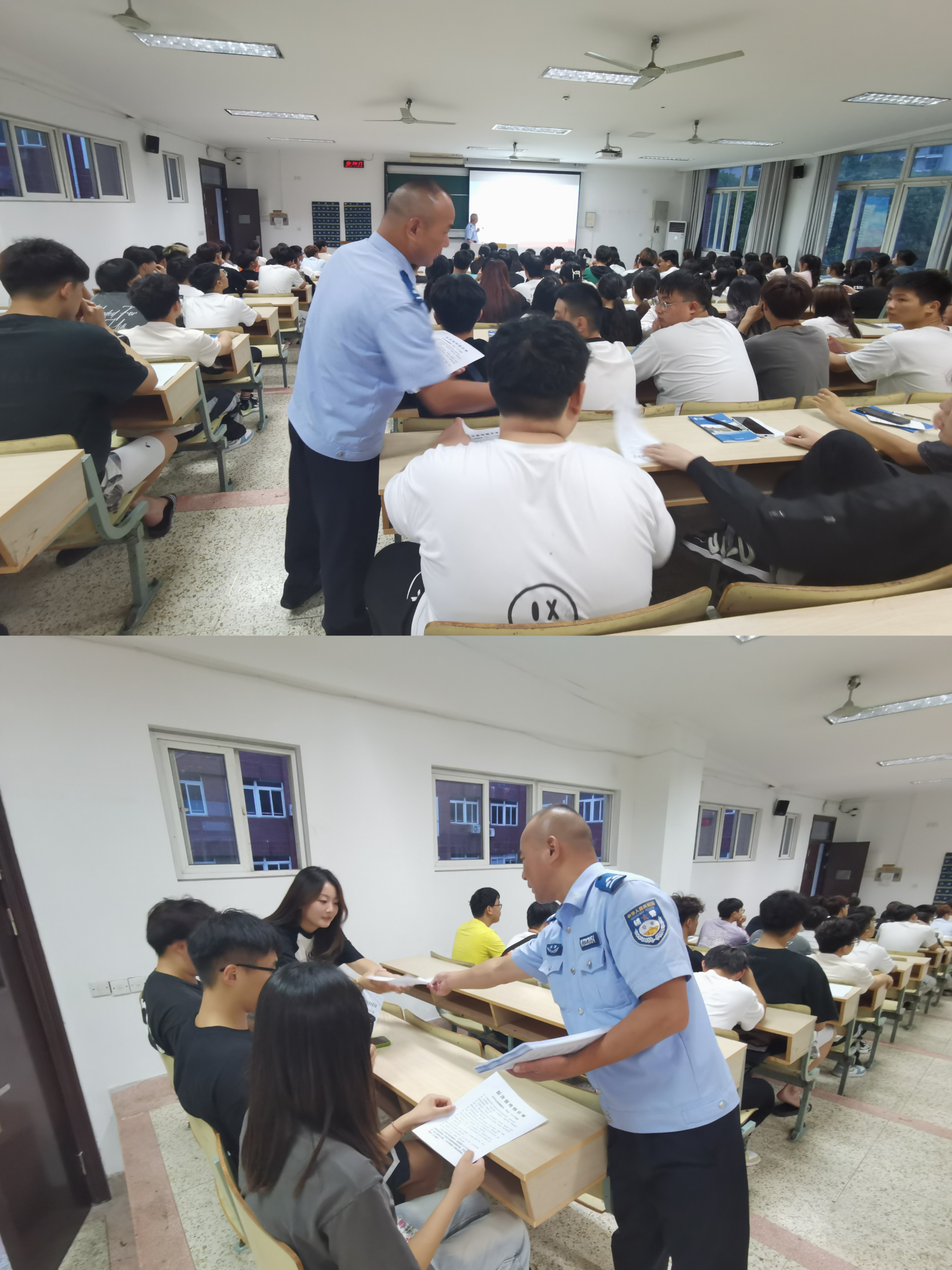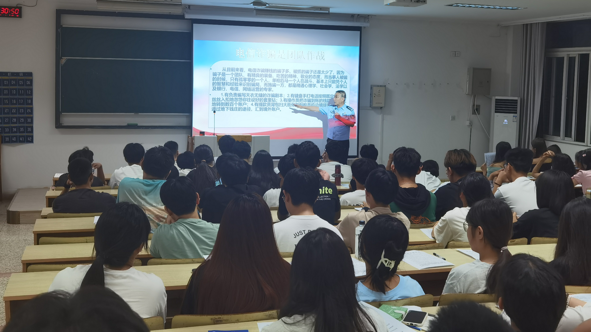 9月11日晚,学院保卫处、学生处牵头,邀请江宁开发区派出所娄军来警官走进91自拍 ,为2023级新生开展开学第一课“反诈宣讲”。民用航空系作为本次活动第一站,全体新生热情高涨,课堂氛围活跃。