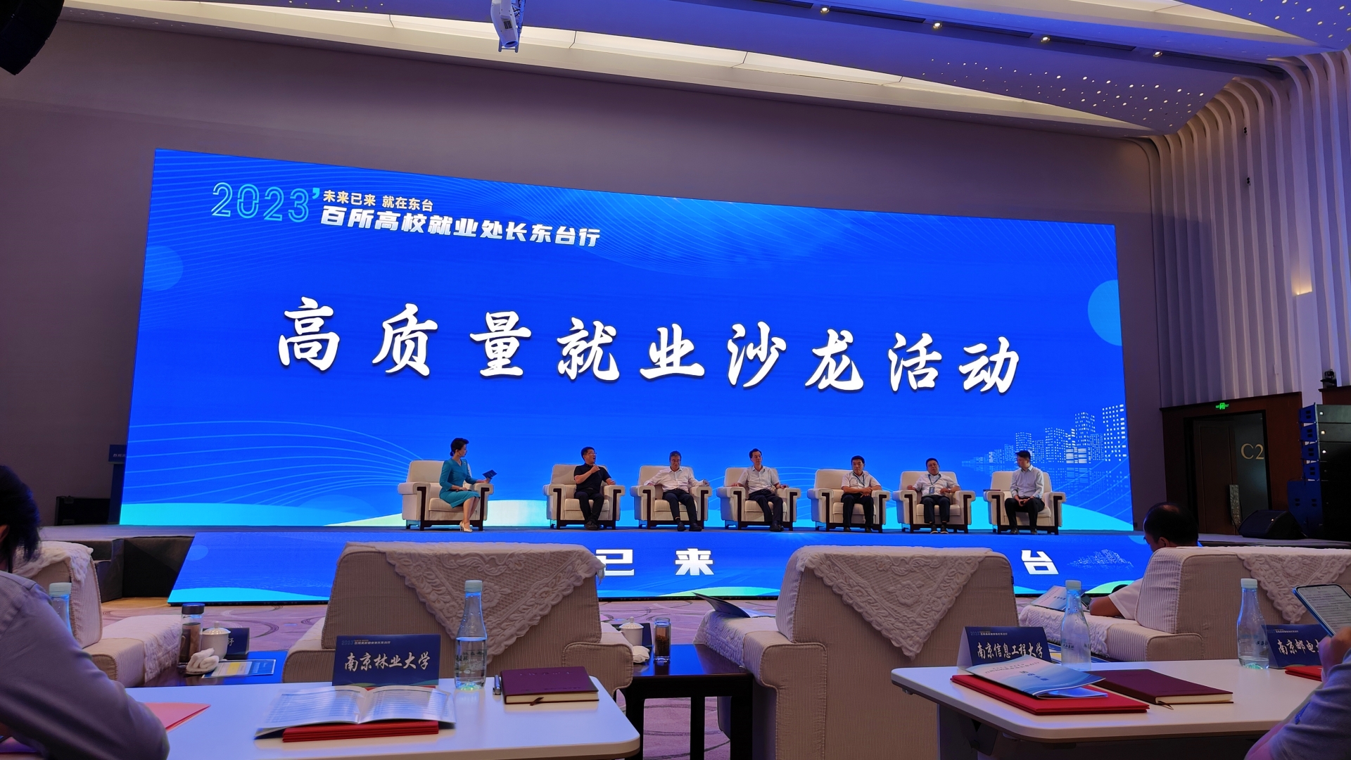 现场举办高质量就业沙龙活动。江苏省人社厅就业促进处、江苏省高校招生就业指导服务中心、盐城市人社局相关领导,徐州工程学院、江苏省盐城技师学院就业处长,领胜城科技(江苏)有限公司高级经理王晓龙等围绕人才培养、产教融合、合作共建等方面,展开深入交流。