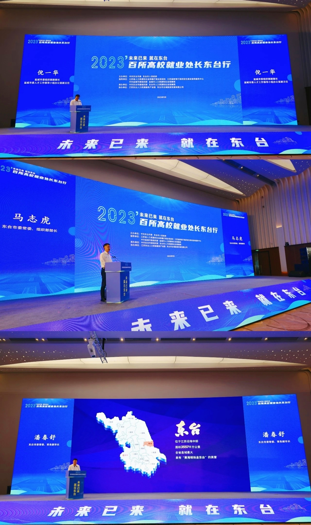 推介对接会上,盐城市委组织部副部长、盐城市委人才工作领导小组办公室副主任倪一华,东台市市委常委、组织部部长马志虎,东台市市委常委、常务副市长潘春舒分别致辞,真诚期待更多青年才俊、高端人才能够走进盐城、走进东台,在这片发展热土上大展宏图,尽情释放创业激情和创新潜能,成就事业抱负,实现人生价值!