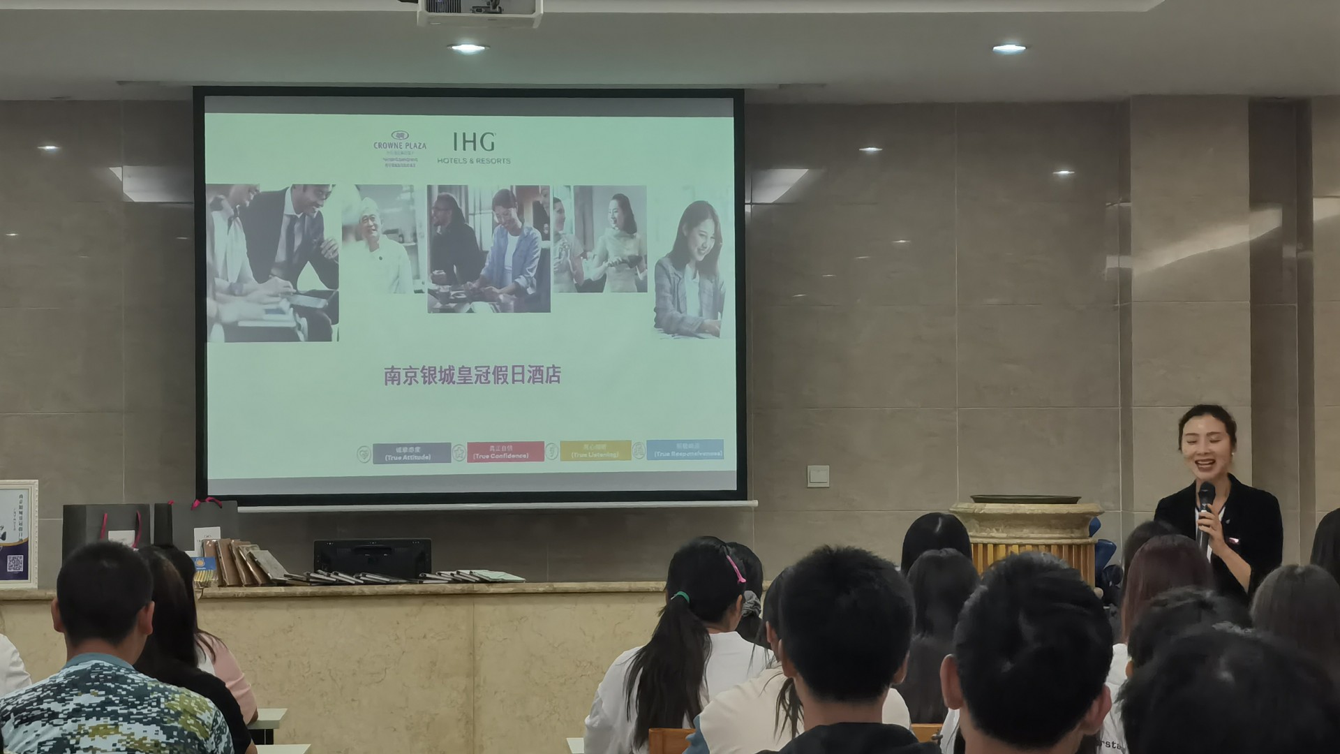 苏宁钟山国际高尔夫酒店、南京长江之舟华邑酒店集团、南京银城皇冠假日酒店依次开展了校企合作班宣讲工作,通过现场企业情况介绍、校企合作班“学长说”、互动答疑等环节,就校企合作班各类经费、各项活动及同学们普遍关心的问题进行了宣讲。
