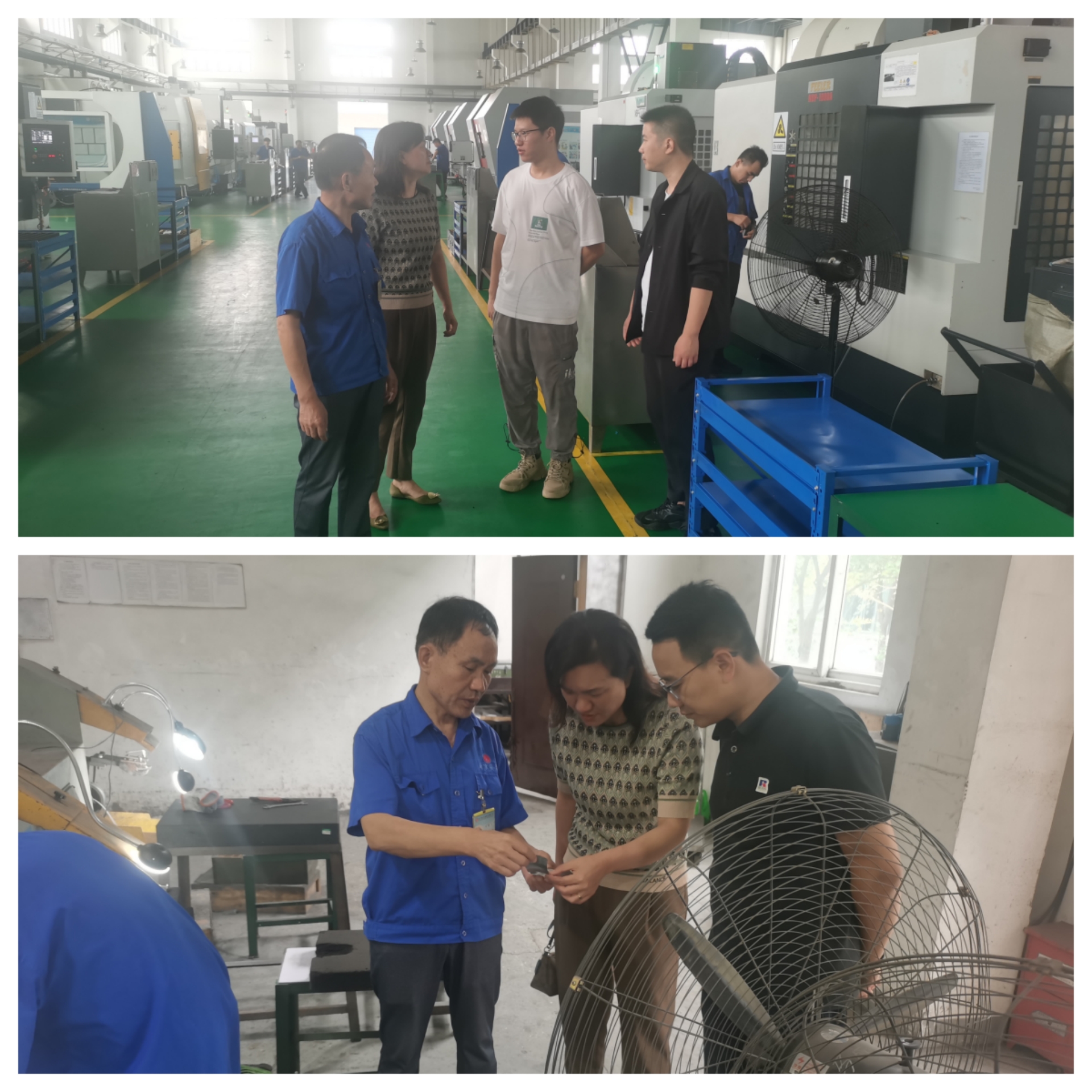 南京赛达机械制造有限公司高度重视此次活动,刘董事长和人事处王经理亲自接待,并带领参观车间,讲解公司各种产品,机器设备及功能。随后,双方就校企合作融合的角度展开了深入的交流,围绕人才培养、协同育人、学生岗位实习等方面进行了探讨,最后,一起看望了在企业岗位实习的学生,了解他们的需求,并对他们的状态给予了肯定,鼓励他们珍惜机会、虚心求教。