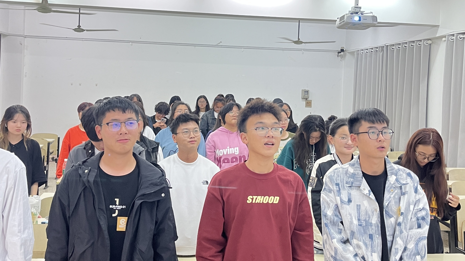 第二个是宣读友好宣言环节,团支书带领全班同学大声朗读宣言:感谢你们,我小组的伙伴,和你们一起探索和成长,是我的荣幸;你们的聆听让我感到被尊重……