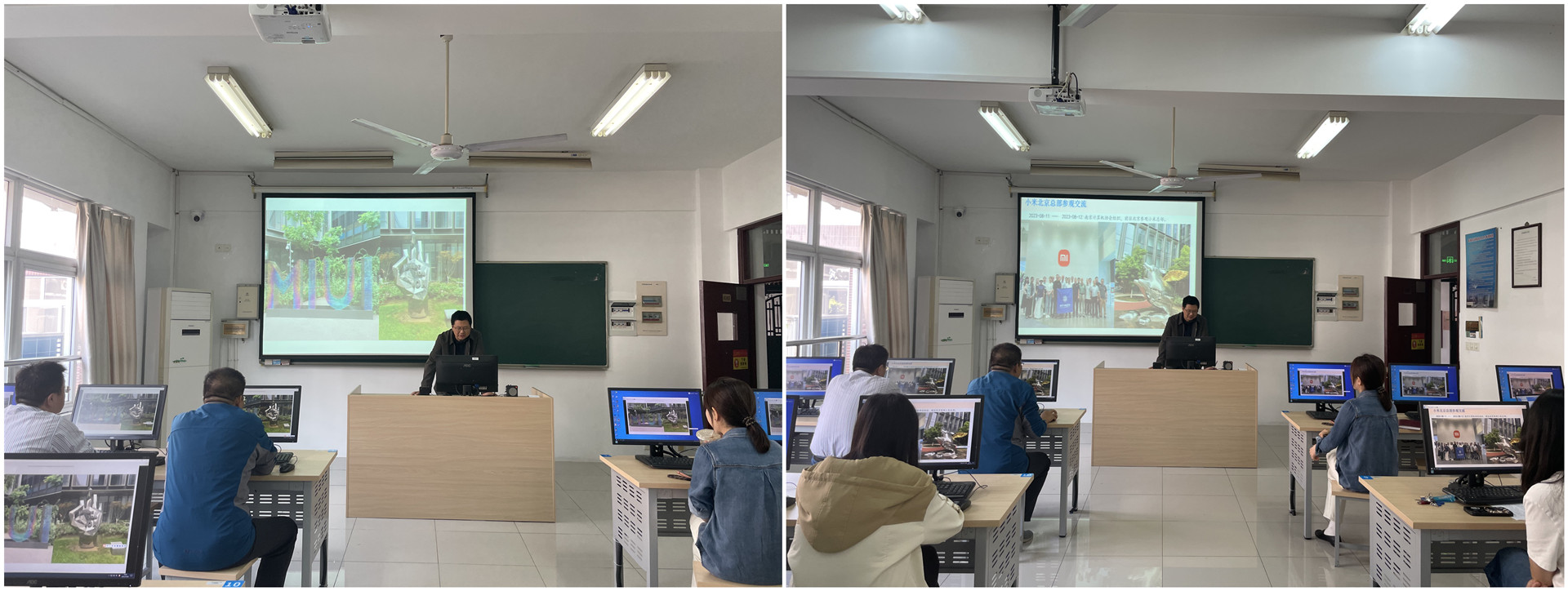 专任教师陈锦锦参加的国培项目是“在线课程平台设计与实施”,分享会上,陈锦锦老师介绍了慕课的发展历程、国内外在线课程的区别、典型案例(电路和电子、python交互编程入门1)及在线课程建设的必备条件等,具有较强的实用性,为后续教师在线课程开发具有一定的指导作用。