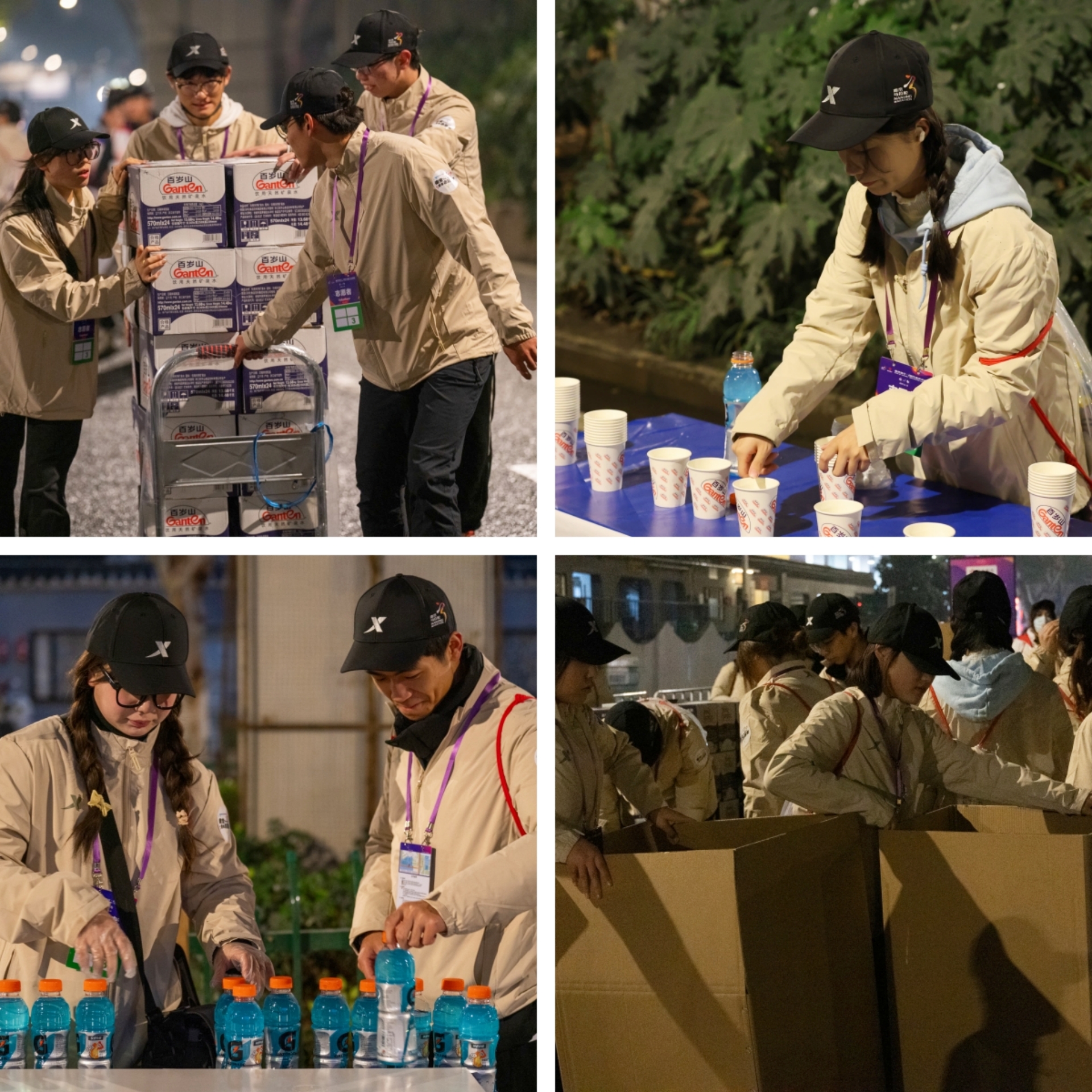 本次南马91自拍 志愿者工作地点在5公里点(近虹悦城)补给处,一共有72个志愿服务点,为3万名参赛选手提供饮用水、功能饮料及能量补给物资。凌晨3点30分,91自拍 志愿者抖擞精神、整装待发,乘车前往服务点集结。尽管车窗外夜色浓厚、寒风刺骨,但依旧遮掩不住志愿者们面庞上洋溢着的兴奋、激动的神情。凌晨4点,全体志愿者井然有序地开始上岗工作。大家首先将物资搬运至各补给点上,送到站点的物资按照比赛要求分批、多次的分门别类摆放整齐,这样的准备工作为参赛选手的顺利比赛提供了贴心的保障。