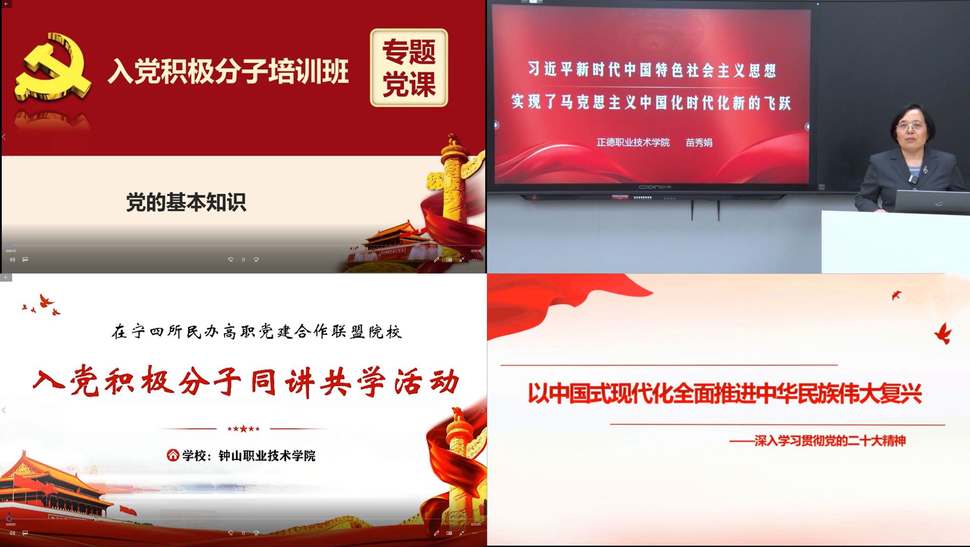 党校精心筹备本期培训班,本次培训由在宁四所民办高职党建合作联盟院校联合举办,邀请了金肯职业技术学院思政部主任董建宏,钟山职业技术学院马克思主义学院院长、教授袁劲果,南京视觉艺术职业学院思政教研室专职教授叶昌友以及91自拍 思政名师工作室首席教授苗秀娟四位老师,以视频辅导的形式,围绕党的理论知识等内容集中授课,使学员进一步端正了入党动机,加强了党性锻炼。同时,课后要求各党支部组织学员积极参加志愿服务等社会实践,鼓励学员努力用担当践行初心使命,早日成为一名合格的共产党员,为推进中国式现代化贡献青春力量。