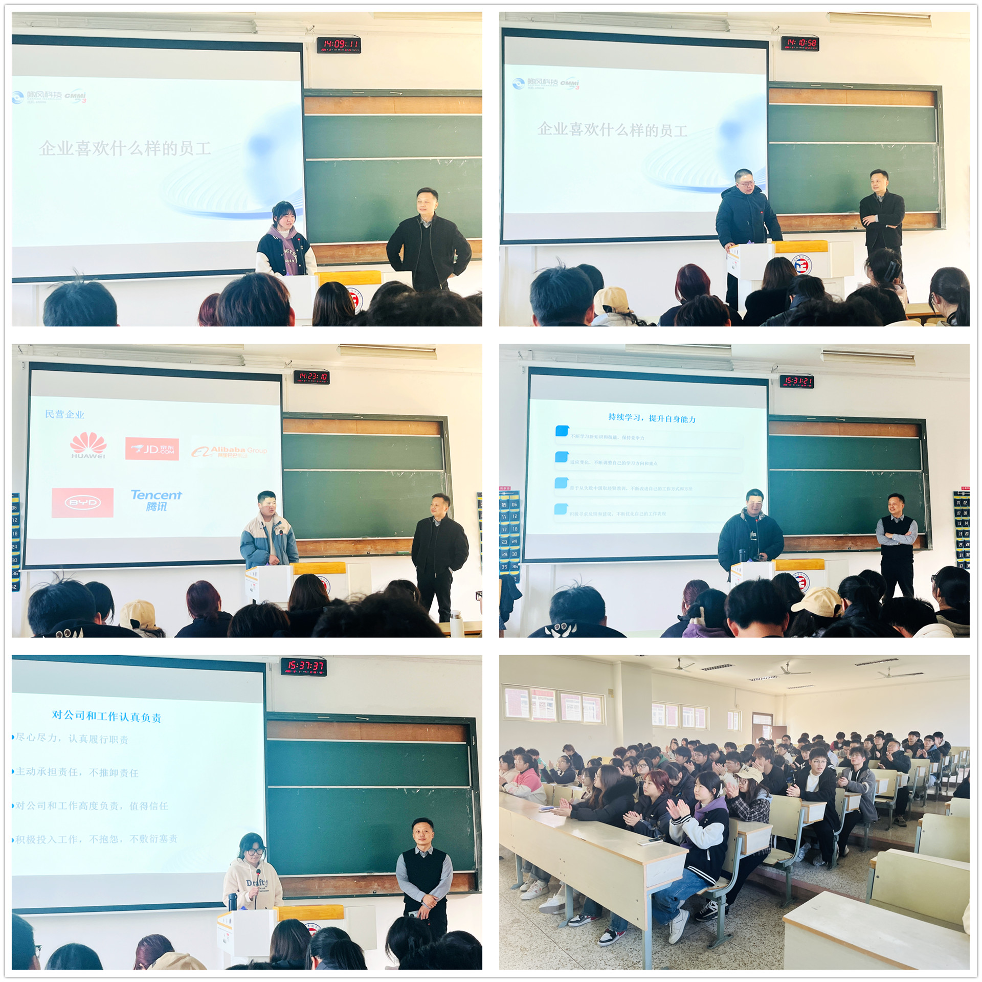 讲座中,陶露以《企业喜欢什么样的员工》为主题,向同学们分享了自己的工作经历和创业经历,从最初世界通信巨头富士通公司的学徒,到独当一面的项目负责人;从软件工程师转型到销售岗位,再成为高级管理人员,最后自主创业成为南京IT行业的领军人,陶露向同学们展示了他脚踏实地、积极向上的企业家风貌。本次讲座引起了同学们的极大兴趣,课堂上踊跃发言,陶露与同学们互动交流,一一解答了学生们的提问。活动尾声,部分学生代表还上台分享了此次活动的收获和感想。活动现场气氛十分热烈,取得了很好的效果。同学们纷纷表示此次讲座受益匪浅,对自己的职业规划有了更为清晰的认识和方向,在今后的学习和生活中,将不断努力学习,充实自己,为实现自己的梦想而不懈奋斗。