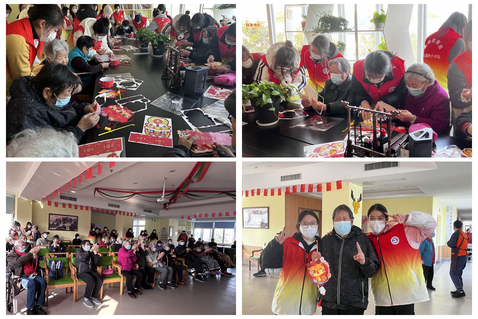 表演结束后,志愿者指导并协助老人们一起制作了各式各样的灯笼,在传统文化中灯笼代表着团圆、喜庆和吉祥,象征着家庭和睦、事业兴旺。希望通过灯笼的制作给大家营造祥和的氛围。