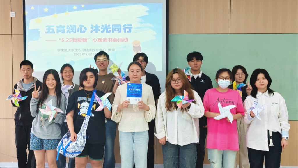 为了让同学们在阅读中获得学习的乐趣,感受文字的力量,探索心灵的深邃,在不断的学习与感悟中,实现自我成长,培养出积极健康的心理状态和良好的心态。5月10日下午13点30分学生处大学生心理健康中心在9205教室举办“五育润心 沐光同行”心理读书会活动,活动由大学生心理健康中心樊荣老师负责,来自各系的学生代表共60人参加了此次活动。