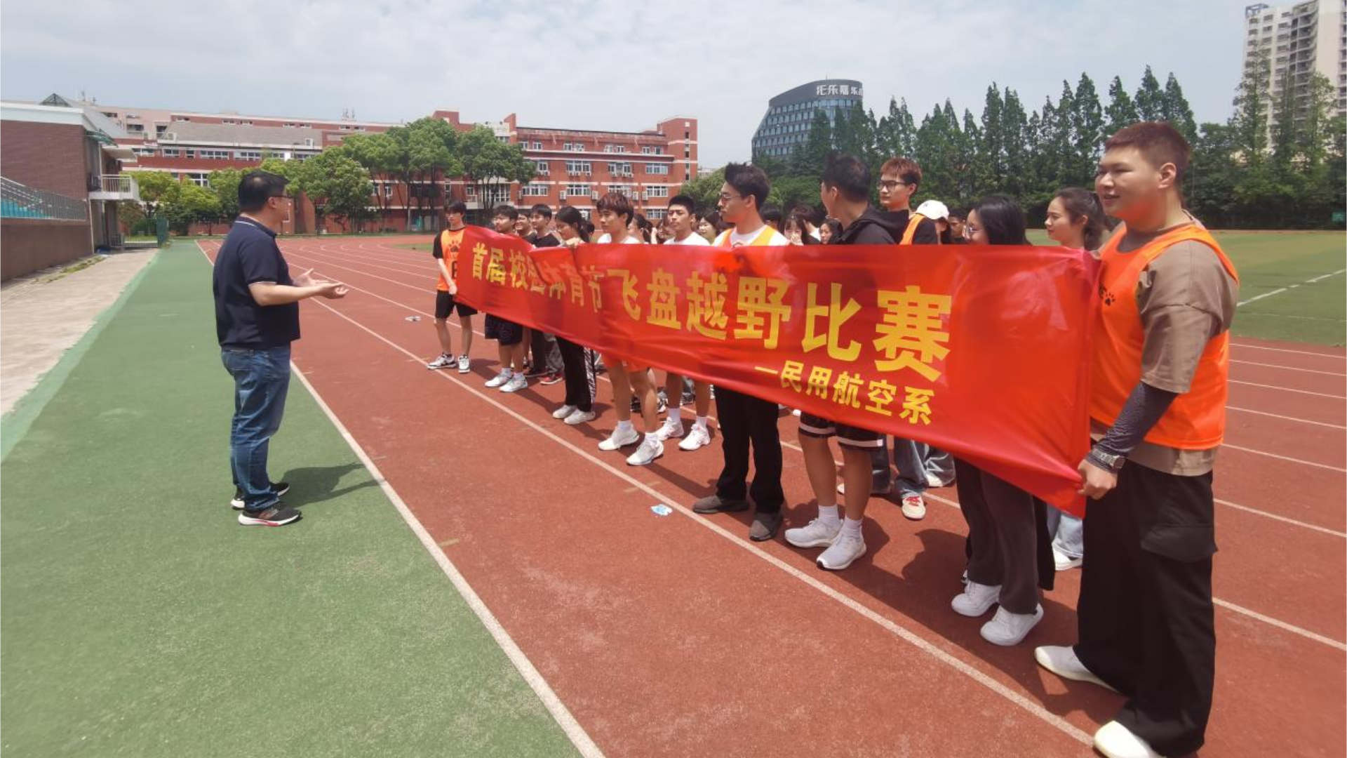 5月15日中午,学院首届体育节之飞盘越野赛在田径场正式开赛。本次比赛由民用航空系主办,全院各系部参与。