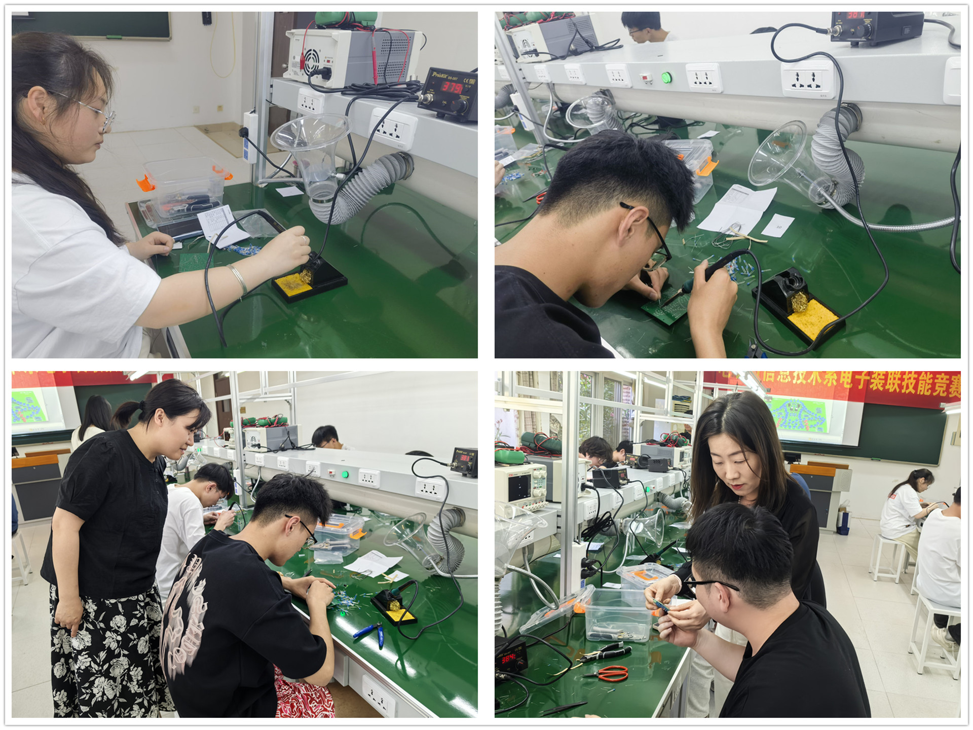 5月23日下午,电子与信息技术系第二届电子装联技能竞赛在教学楼6208实训室开赛。电子信息工程技术专业 2022 级和 2023 级的22名学生选手在这里展开角逐。