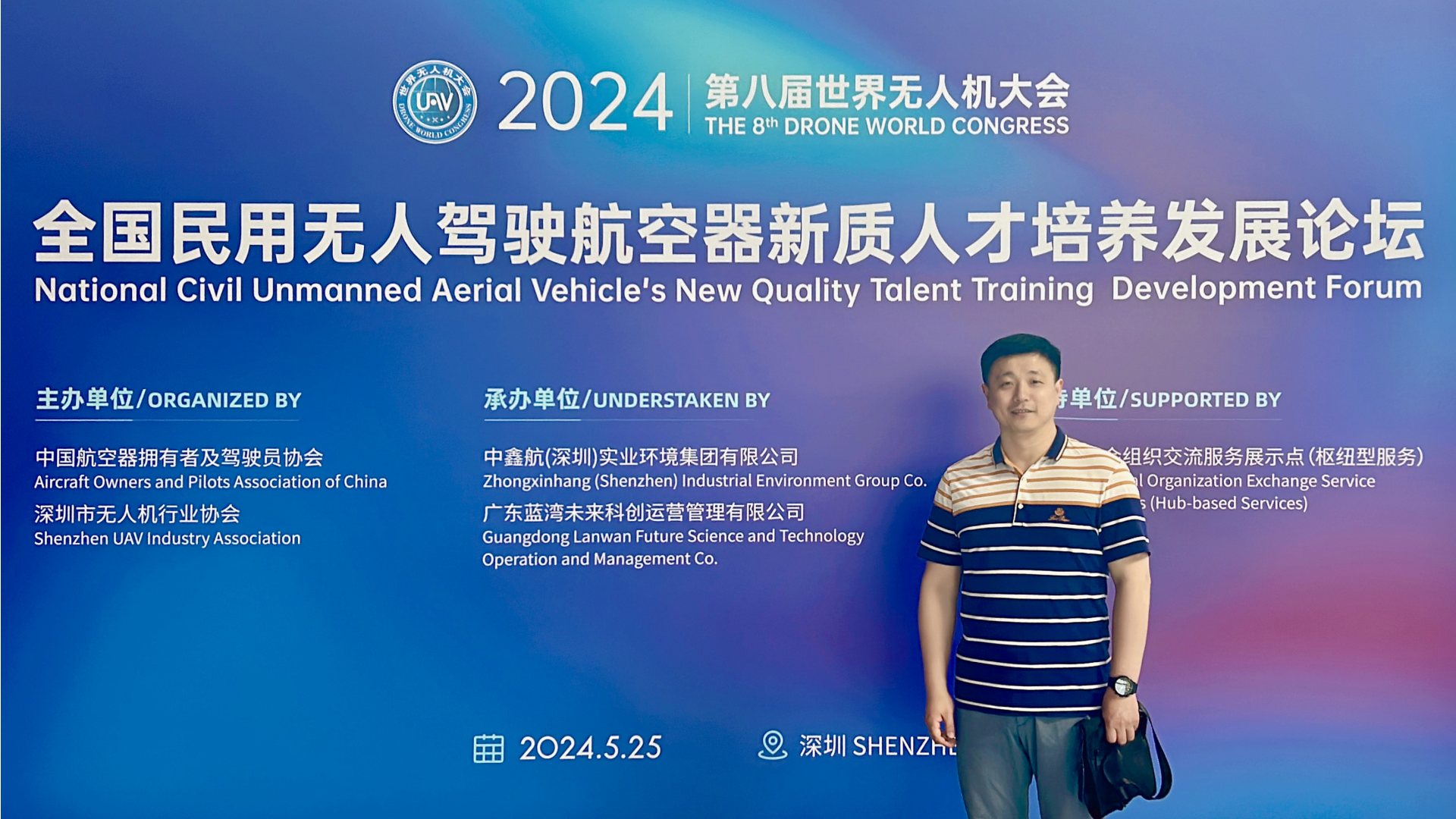 5月24日至26日,民用航空系专业教师雍巍前往深圳福田深圳会展中心,参加由中国电子信息行业联合会、中国航空器拥有者及驾驶员协会、中国信息协会、深圳市无人机行业协会联合主办的第8届世界无人机大会暨2024国际低空经济与无人系统博览会、2024第九届深圳国际无人机展览会。期间除参观展会外,雍巍老师还参与旁听多场专业论坛会议,包括:eVTOL峰会、民用无人驾驶航空器新质人才培养发展论坛、无人机物流配送应用论坛、无人机抗干扰通信与高精度定位技术论坛等。