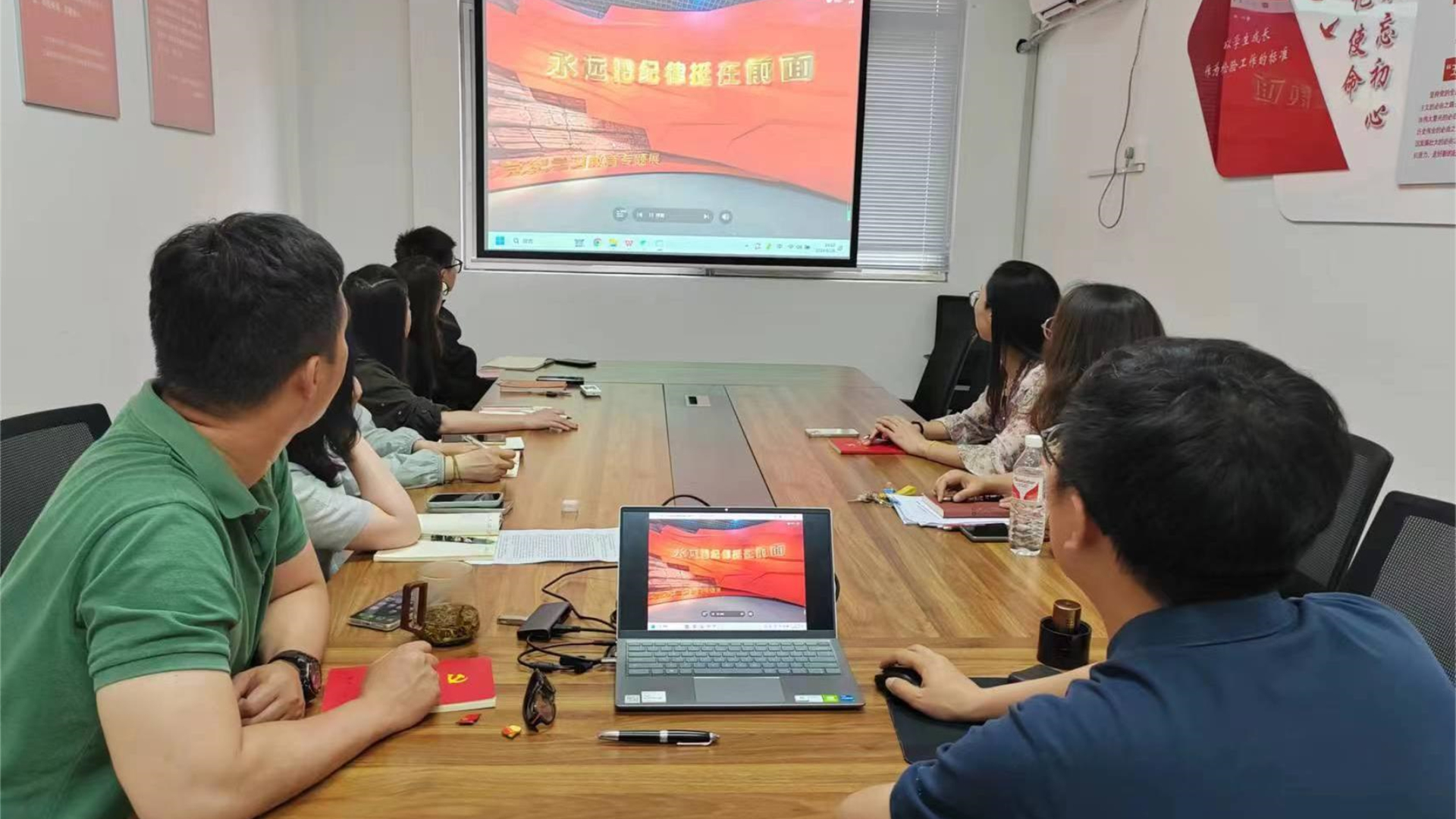 为深入推进党纪学习教育,引导支部党员学纪、知纪、明纪、守纪,强化廉洁自律意识,筑牢廉政思想防线,6月19日下午14点,机关第五党支部于2207会议室开展了一场独具特色的党日活动——云端参观“永远把党纪挺在前面”天津市党纪学习教育专题展。此次活动由支部书记祝佳俊主持,党支部全体党员均参与其中。