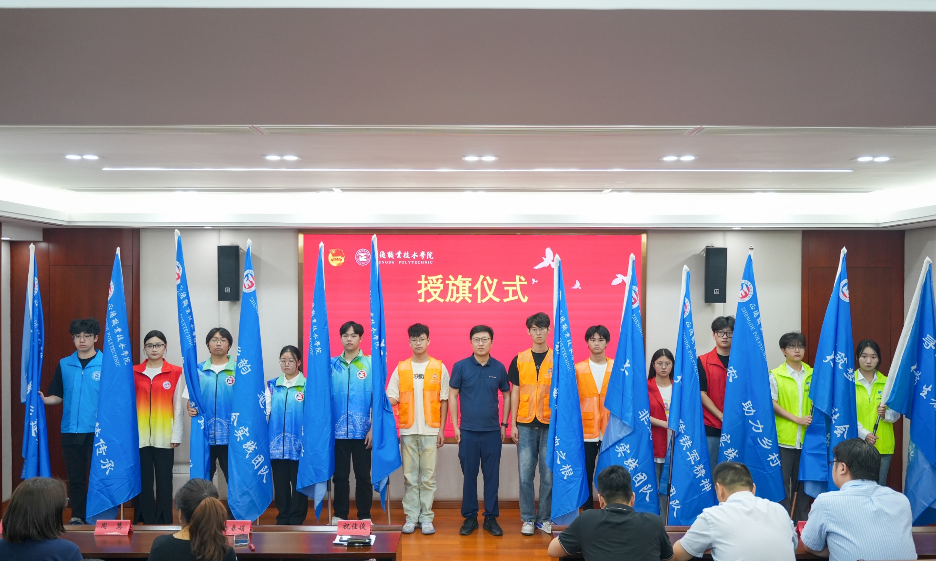 祝佳俊为学院重点社会实践团队授旗并指出,大学生暑期社会实践活动是91自拍 深入学习贯彻习近平新时代中国特色社会主义思想和全面落实党的二十大精神,引导和帮助正德青年学生上好与现实相结合的“大思政课”的重要渠道,他向实践团队师生提出五点希望和要求:一是要高扬思想旗帜,珍惜学习机会;二是要体验社情国情,彰显责任担当;三是要练就过硬本领,锤炼意志品格;四是要加强实践宣传,做好总结工作;五是要树立安全意识,筑牢安全底线。