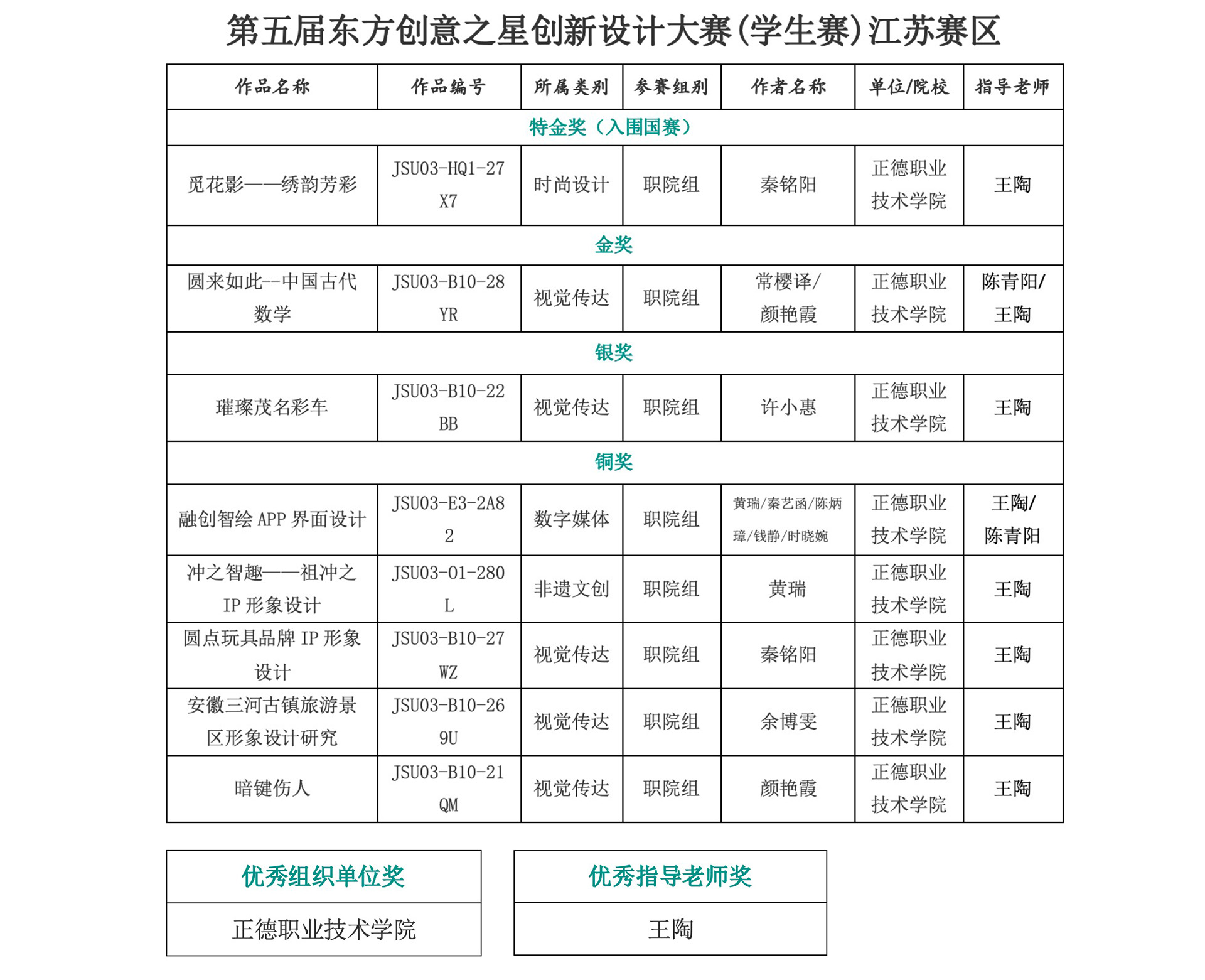 第五届东方创意之星创新设计大赛是由工业和信息化部国际经济技术合作中心批复举办的工业设计领域学科竞赛。大赛吸引了全国34个省区市(含港澳台)及全球79个国家或地区的1800余所高校和800余家设计机构参与,并举办院士名家论坛、讲座、工作坊等活动100余场;和30余家重点机构联合共建东方创意之星产教联盟,旨在构建全新的设计创新体系,促进了产教融合与设计产业化。每届大赛均正式出版《东方创意之星大赛优秀作品集》,大赛官网访问量累计达900多万次,在海内外高校、设计行业、各相关业界产生了广泛的影响。