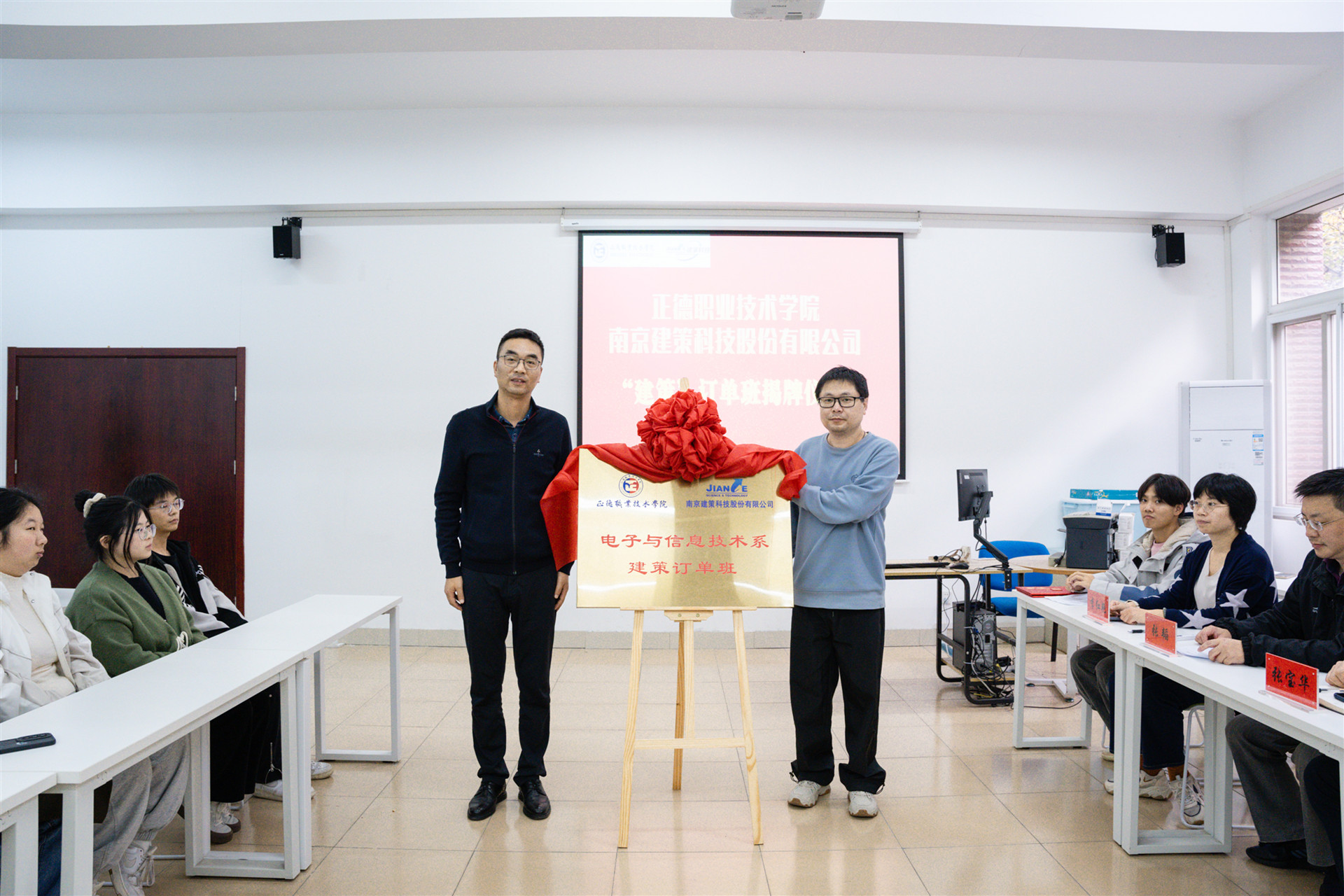 10月31日,电子与信息技术系与南京建策科技股份有限公司强强联手,在学院5109-D教室隆重举行“建策订单班”成立暨揭牌仪式,标志着双方合作迈入新阶段,为培养未来ICT行业精英开启了全新征程。