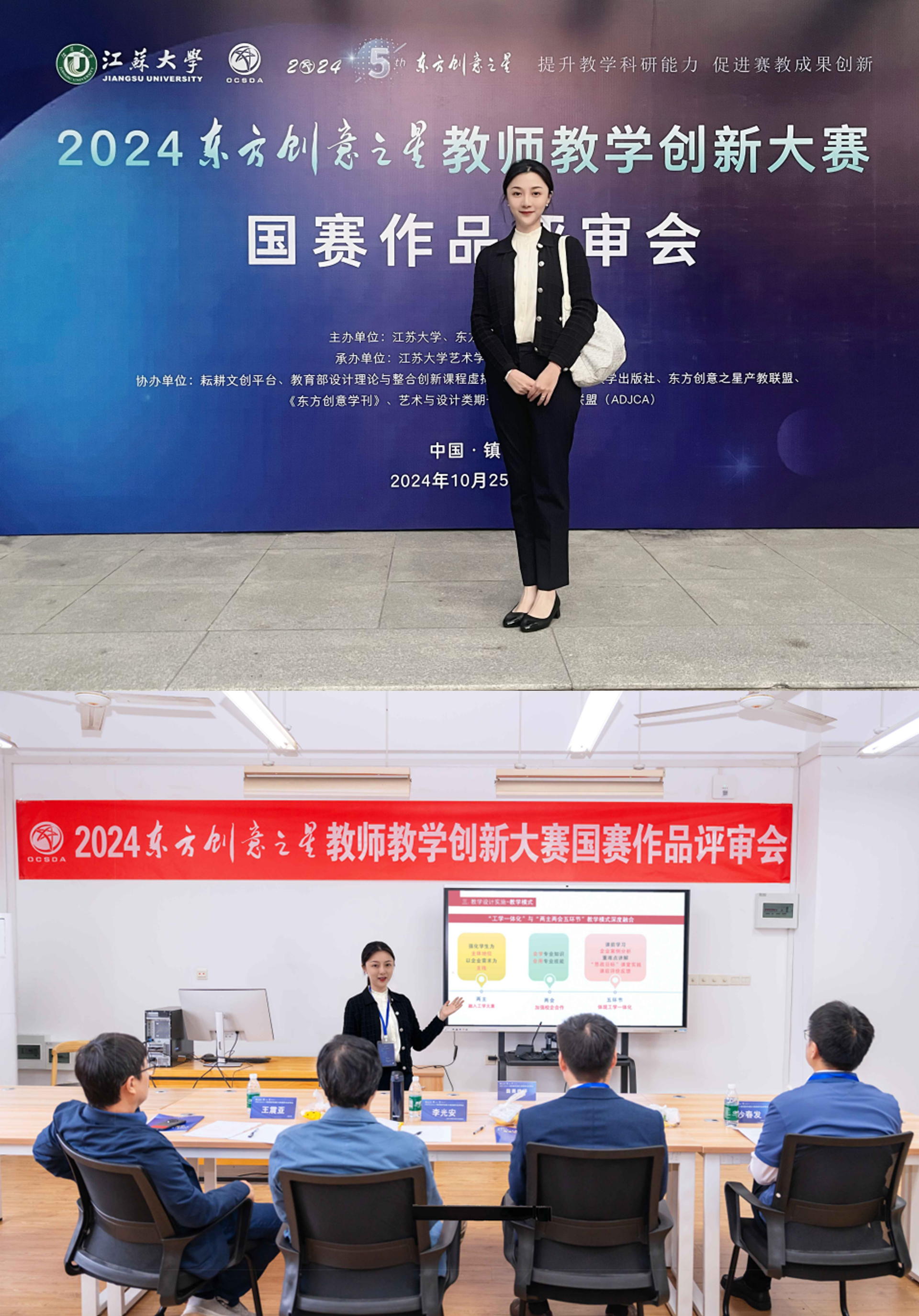 10月28日,2024东方创意之星教师教学创新大赛(国赛)落下帷幕,91自拍 艺术设计与建筑工程系教师团队凭借精湛的教学技艺和卓越的创新设计能力,共夺得1项国赛金奖、1项国赛铜奖、2项省赛特金奖及1项省赛金奖。其中2项省赛特金奖作品成功晋级国赛。尤为值得一提的是,王陶老师在课程与教学赛道中脱颖而出,进入10月26日在江苏大学举行的国赛金奖终评课程答辩环节,这不仅是教师个人的荣耀,更是学院整体高质量教学水平的体现。