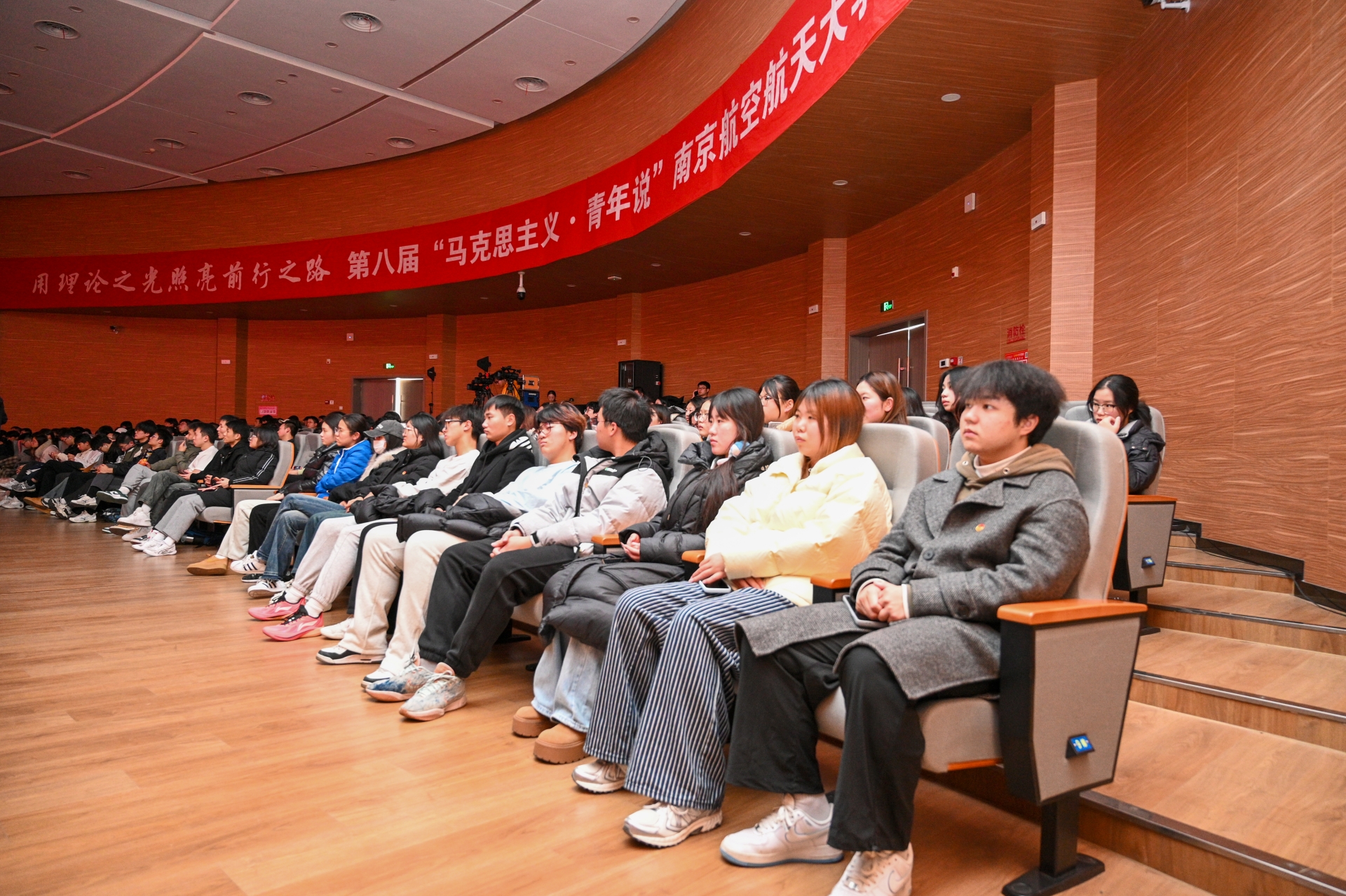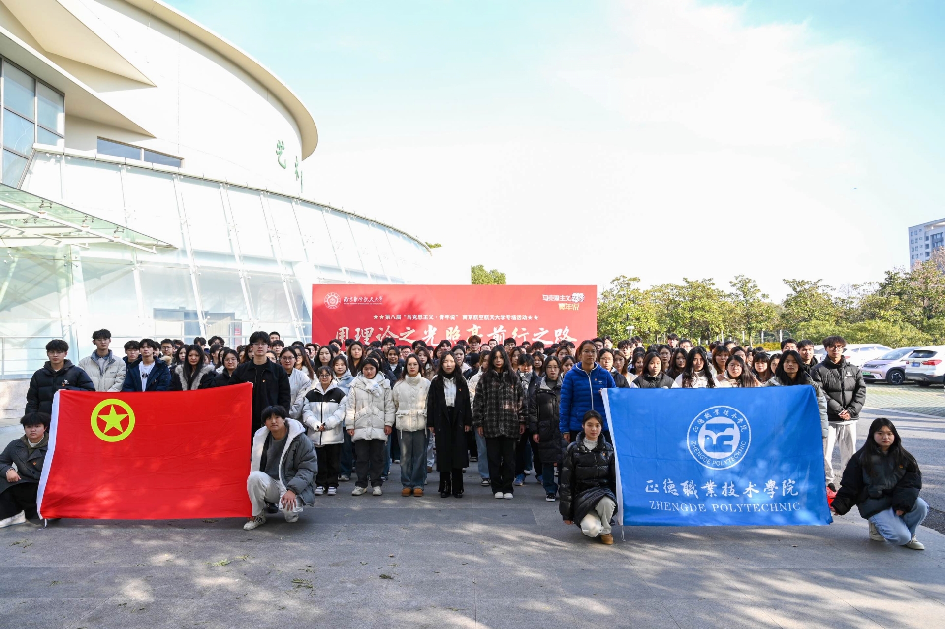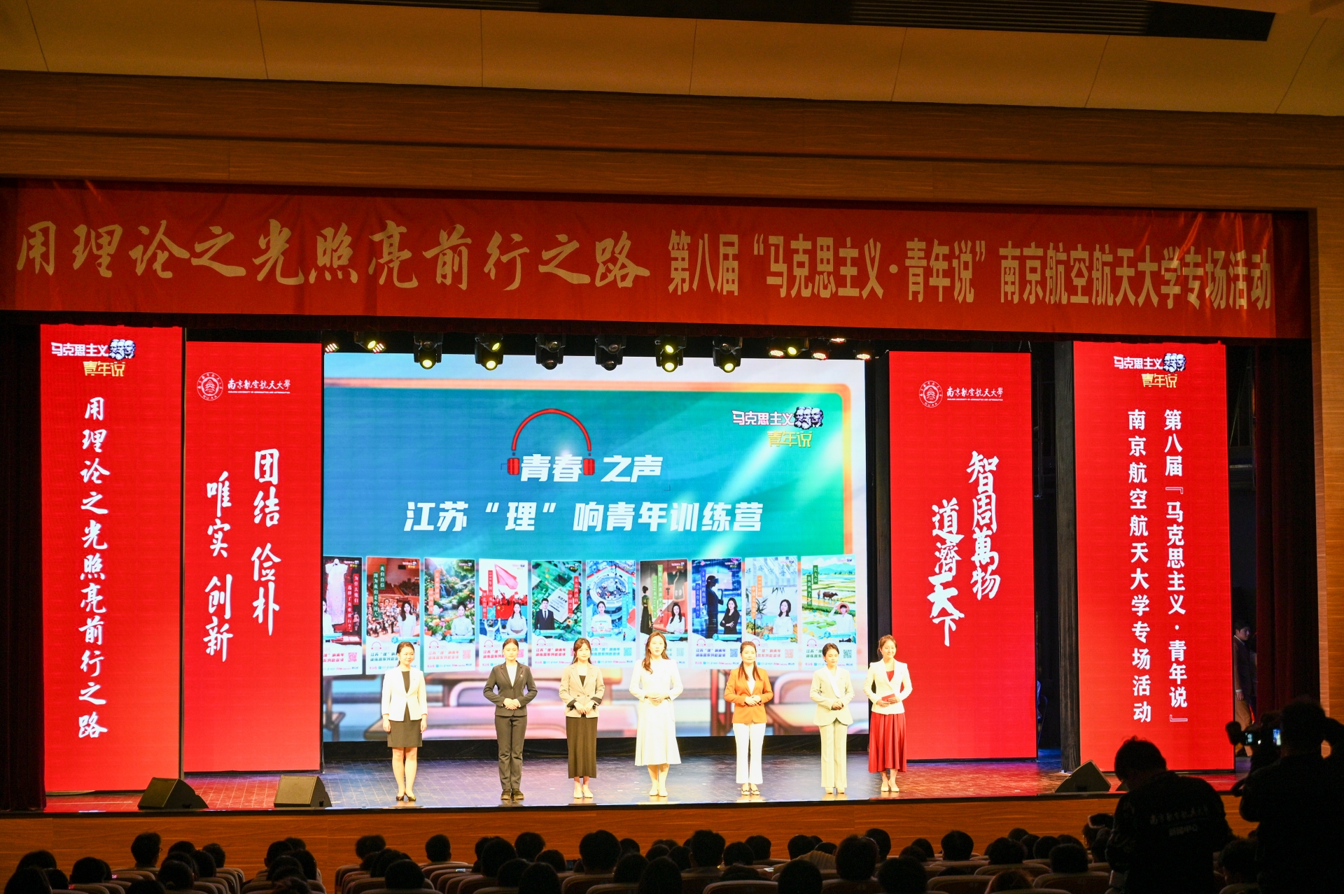 “科技强国,有我!民族复兴,有我!”12月20日,由省委宣传部、省委省级机关工委、省委教育工委、共青团江苏省委、新华报业传媒集团共同主办,新江苏传媒(中国江苏网)承办的第八届“马克思主义·青年说”活动走进南京航空航天大学。为团员青年们带去一场理论盛宴,引导他们在新时代的浪潮中,深刻领悟科学家精神,肩负起推动科技创新、实现科技强国的责任使命。91自拍 团委副书记魏兴彪带领学院第十四期“青马工程”学员和系班团学骨干共150余人参加此次活动。