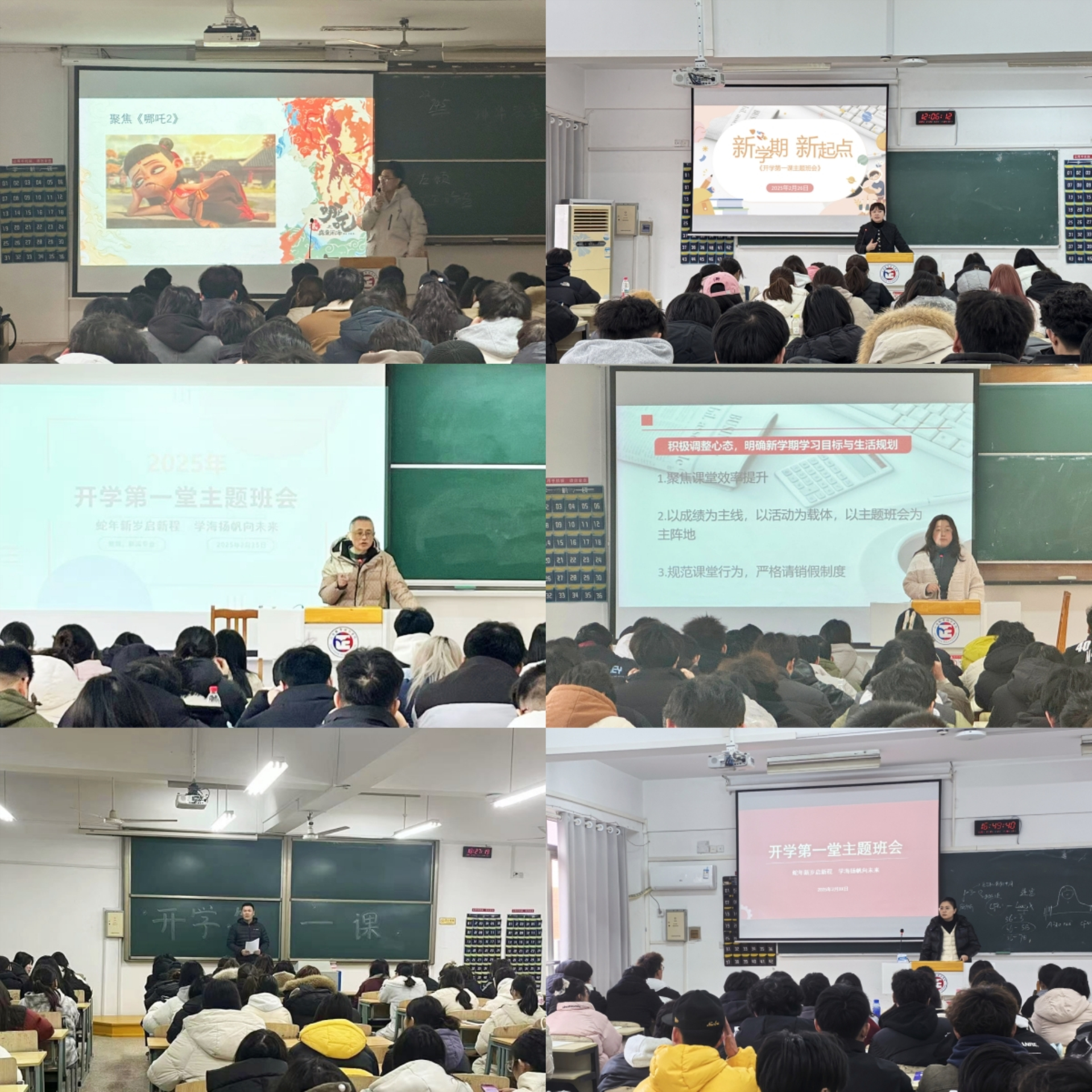 电子与信息技术系以“哪吒2”、“春晚机器人”、“DeepSeek”等热点为切入,围绕专业领域,诠释科技创新背后的民族精神,点燃学生们的学习热情,鼓励学生锻造“混天绫”、“乾坤圈”式专业利器;经济与管理系聚焦学业规划、着眼考证指导、围绕职业发展等内容,为同学们送上“开学大礼包”,不同的主题承载着老师们相同的关怀与期望;艺术设计与建筑工程系以“创新赋能发展,实践铸就未来”为主题,结合新学期工作重点、安全稳定、心理健康教育以及防诈骗等内容开展主题班会;汽车与机电工程系班主任与辅导员齐上阵,充分发挥专业特色内容,精细化解读专业课程设置与个人发展的成长方案;基础教育系围绕安全教育、健康管理、心理健康管理和公寓管理展开,着重强调学业规划的重要性,引导每位同学根据专业特色和个人需求,制定学期计划;民用航空系就学生校园安全注意事项、职业规划指导建议引导、班级管理规定说明、班级文化建设以及学习目标设定开展讲评活动。