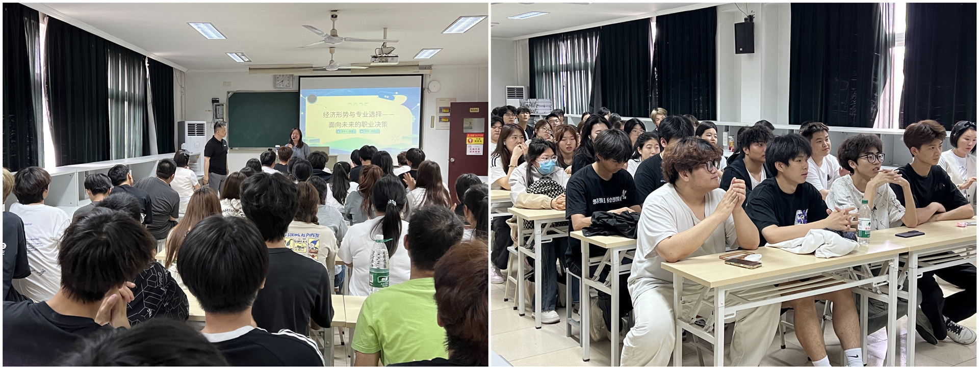 互动环节中,同学们纷纷抛出心中困惑:“AI技术越来越发达,我们未来的就业会不会受到很大冲击?”“想进入军工企业工作,需要提前掌握哪些核心技能?”陶露随即以某企业AI技术转型为例,讲述技术团队如何凭借扎实的算法功底实现岗位升级,又结合自身参与军工项目的经历,细致拆解通信协议开发、硬件电路设计等岗位的能力要求。随着一个个实际案例的展开,现场同学频频点头,不时记录下关键要点。