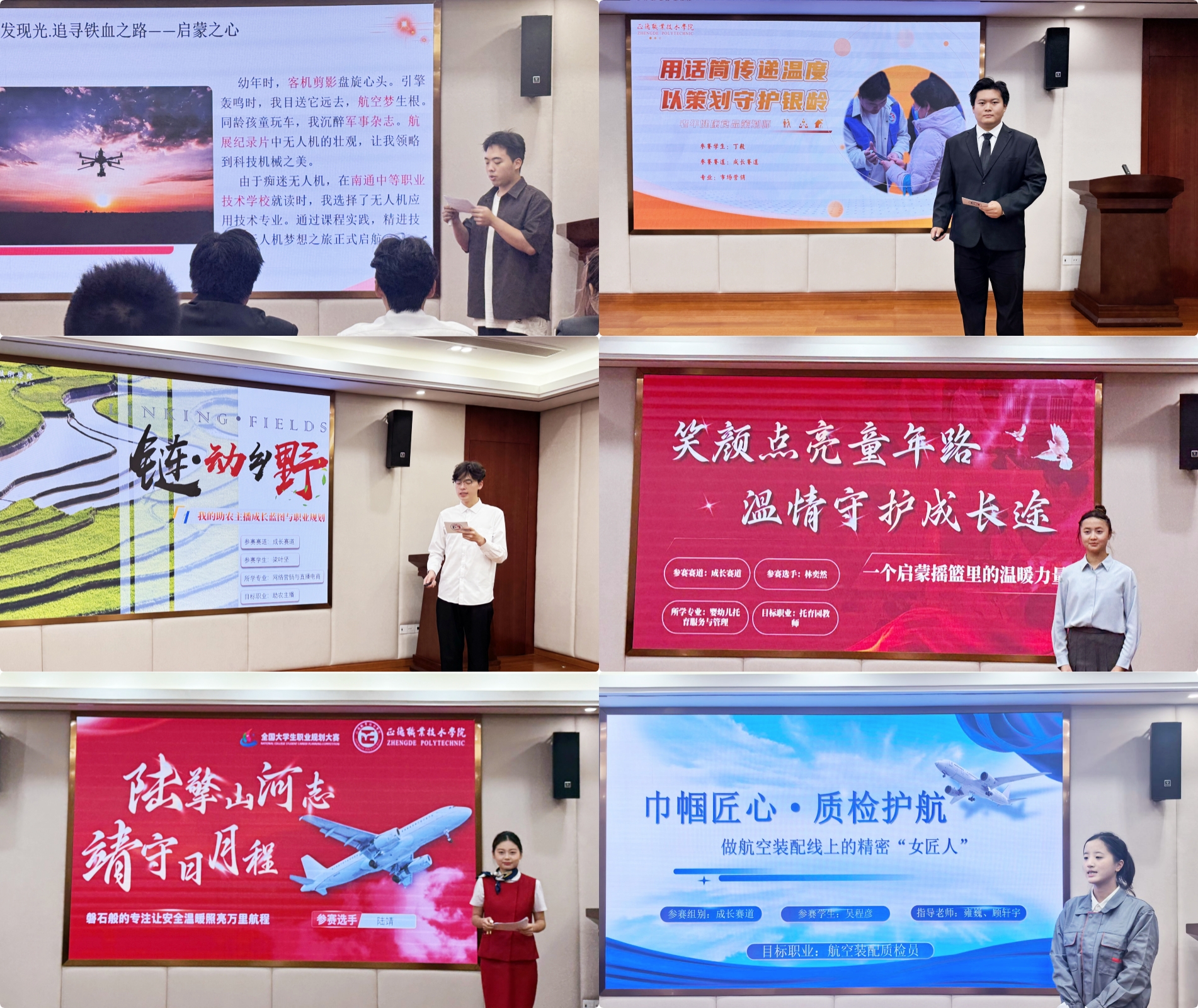 半决赛主要考察的目标是选手生涯发展规划方案的可行性、创新性、逻辑性,现场展示的表现力、感染力以及职业目标的适配度及社会价值等多个方面。比赛现场,在陈述个人理想职业阶段,各位选手都能立足所学专业,紧密结合区域经济发展需求和高职人才培养定位,将个人理想融入国家和社会发展需要,描绘出清晰务实、充满潜力的职业发展蓝图。最终,经过评审,共有8名选手凭借清晰的规划思路、出色的现场发挥和扎实的职业素养成功晋级学院总决赛。