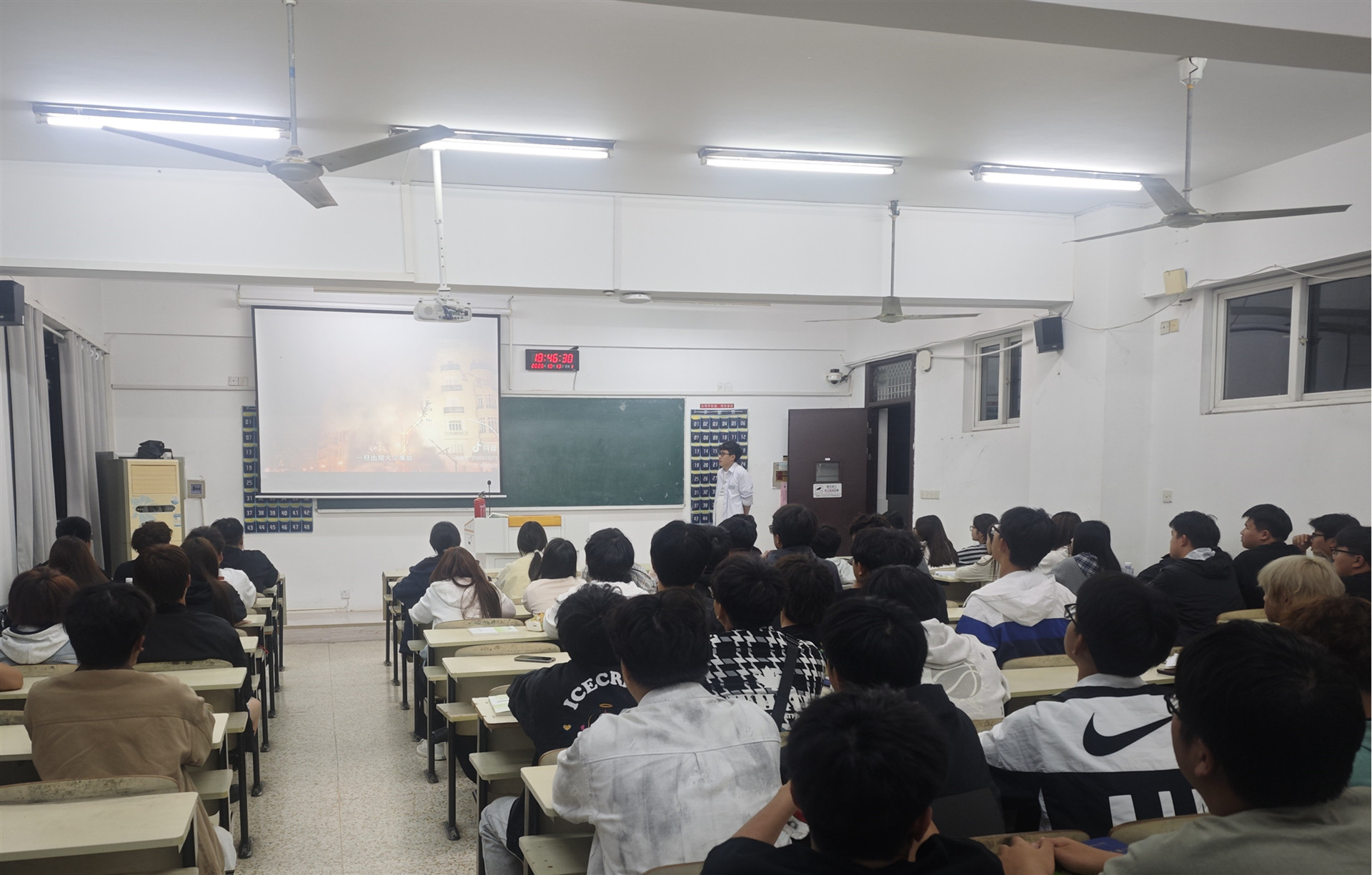 鉴于新生防火意识相对欠缺的现状,付磊结合校园实际火灾案例,系统讲授了火灾预防、火场自救、初期火灾扑救、火灾报警等关键知识,并详细介绍了灭火器材的操作规范与安全要点。通过集体观看消防警示教育片及火场实景图片,学生们直观感受到火灾隐患的普遍性与火灾事故的严重后果,深刻认识到消防安全知识学习与火灾预防的紧迫性。