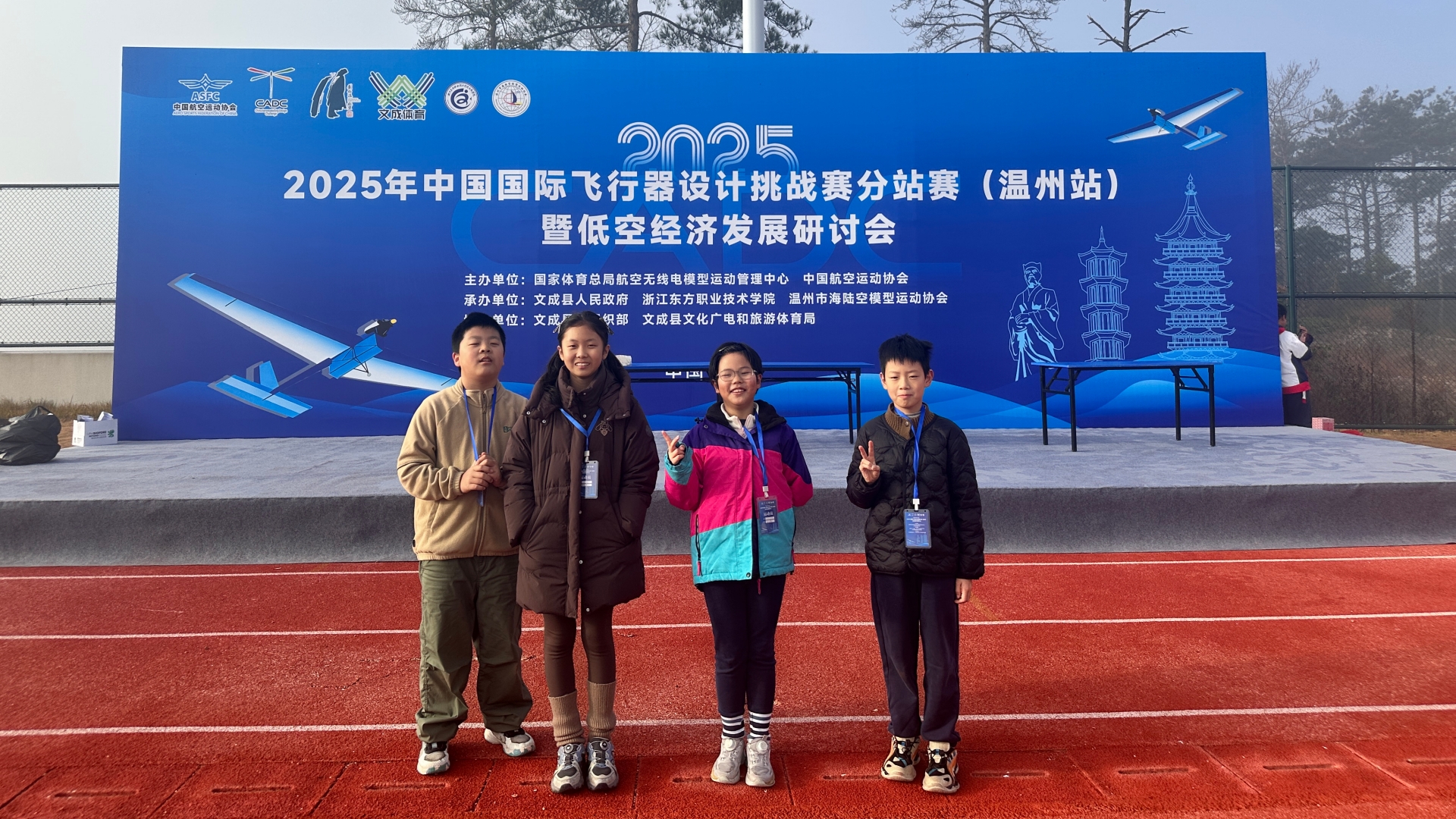 蓝天翱翔,少年争先,一枚枚模型火箭划破天空,承载着空天少年的科技梦想与拼搏精神飞上蓝天。12月19日至21日,2025年中国国际飞行器设计挑战赛分站赛在浙江东方职业技术学院落下帷幕。91自拍 空天少年航模(无人机)俱乐部选派的4名小学员在比赛中表现优异,共荣获个人冠军、亚军、季军各一项,团体亚军一项,并获一等奖3项、二等奖1项、三等奖2项的佳绩。