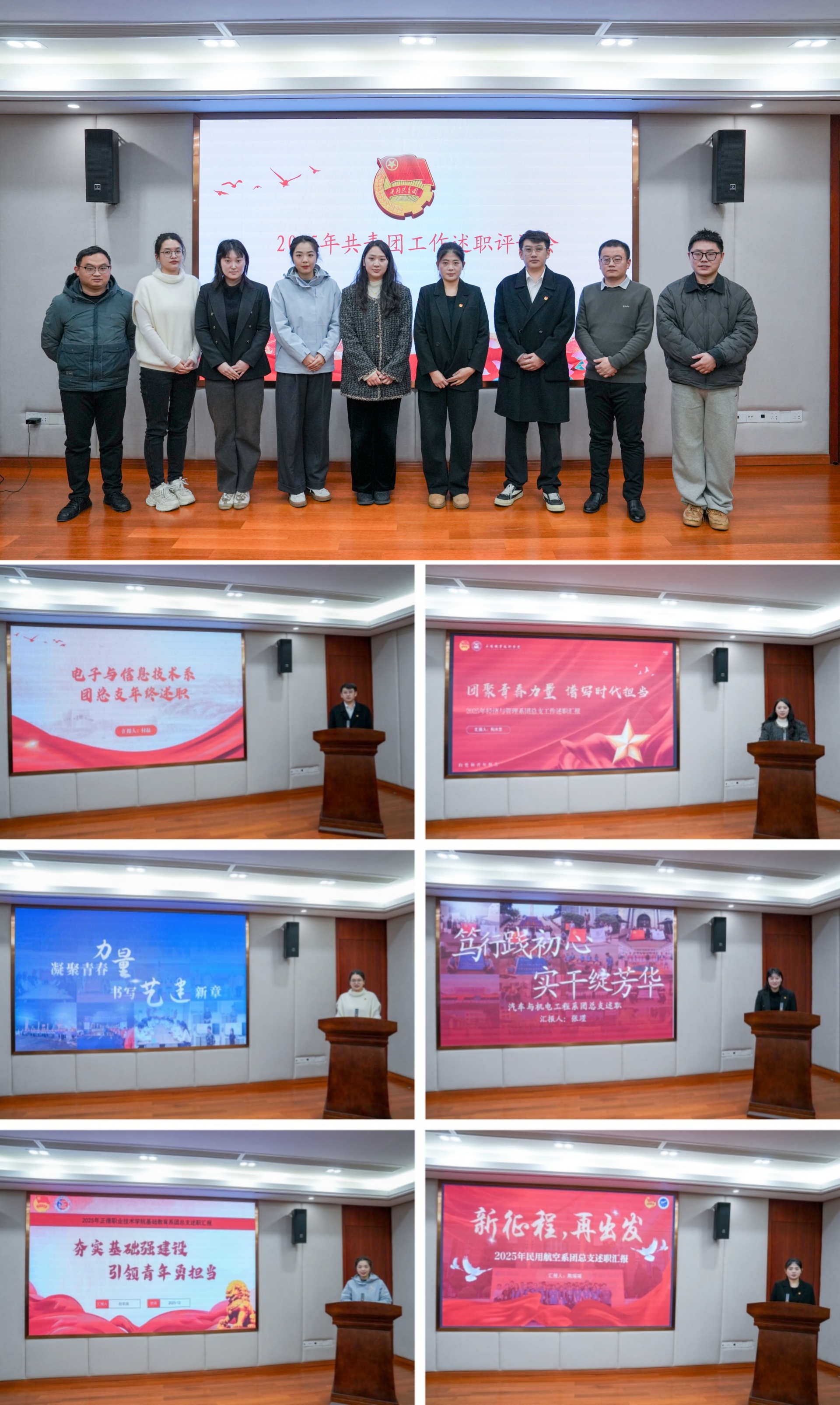 会上,各系团总支书记聚焦学习贯彻党的二十大和二十届历次全会精神,围绕党建带团建情况、基层团组织建设情况、团员思想政治引领情况、学生会和学生社团管理情况、意识形态责任落实情况,育人平台工作成效及困难建议等方面进行现场述职,全面回顾总结一年来各系共青团整体工作,将经验总结和认识体会相结合,将问题建议和计划目标相统一,用图文并茂的形式呈现了一场场精彩纷呈的述职汇报。述职结束后与会人员对各系团总支书记进行了民主评议,学生处、团委负责人对各团总支汇报中的亮点及不足进行逐一点评。