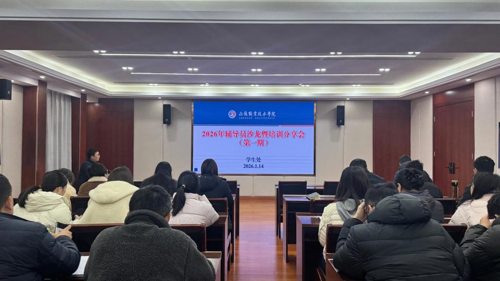 为进一步提升辅导员素质能力,推动学习经验互通共享,1月14日学生处举办了2026年第一期辅导员沙龙暨辅导员培训分享会。学生处、各系分管学生工作负责人、全体辅导员参加会议。
