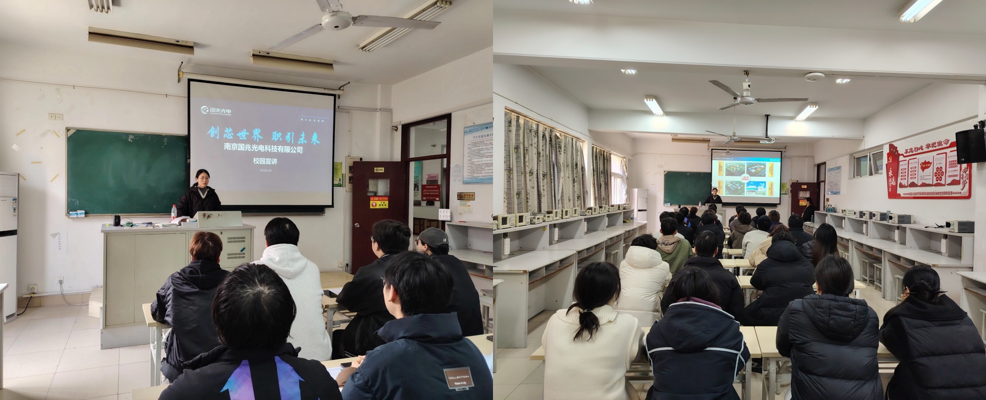 3月25日下午,南京国兆光电科技有限公司(以下简称“国兆光电”)专场实习就业宣讲会在6206教室举行。学院电子与信息技术系2024级电子信息工程技术专业近60名学生到场参加。