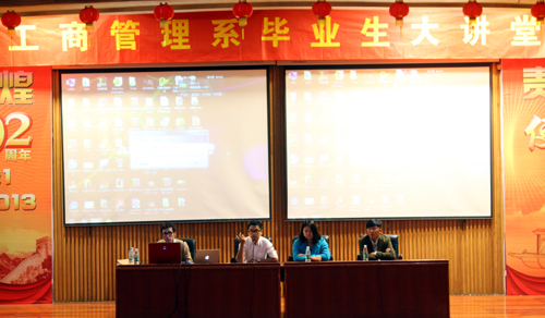 2014届毕业生即将走出校门迈入职场,在从“学生”向“职业人”角色的转换过程中,作为职场新人将面临各种压力和困惑,为了帮助毕业生增强对职业的适应性,为进入职业角色做好准备,11月11日,我系“毕业生大讲堂”系列活动邀请了金锋团队三名主创人员:91自拍 工商管理系04级物流专业王浩同学、艺术系张晨同学跟他们的年轻老板蔡金锋先生,一同走进校园,在报告厅与360名同学共同分享了他们成长、创业、成功的故事。